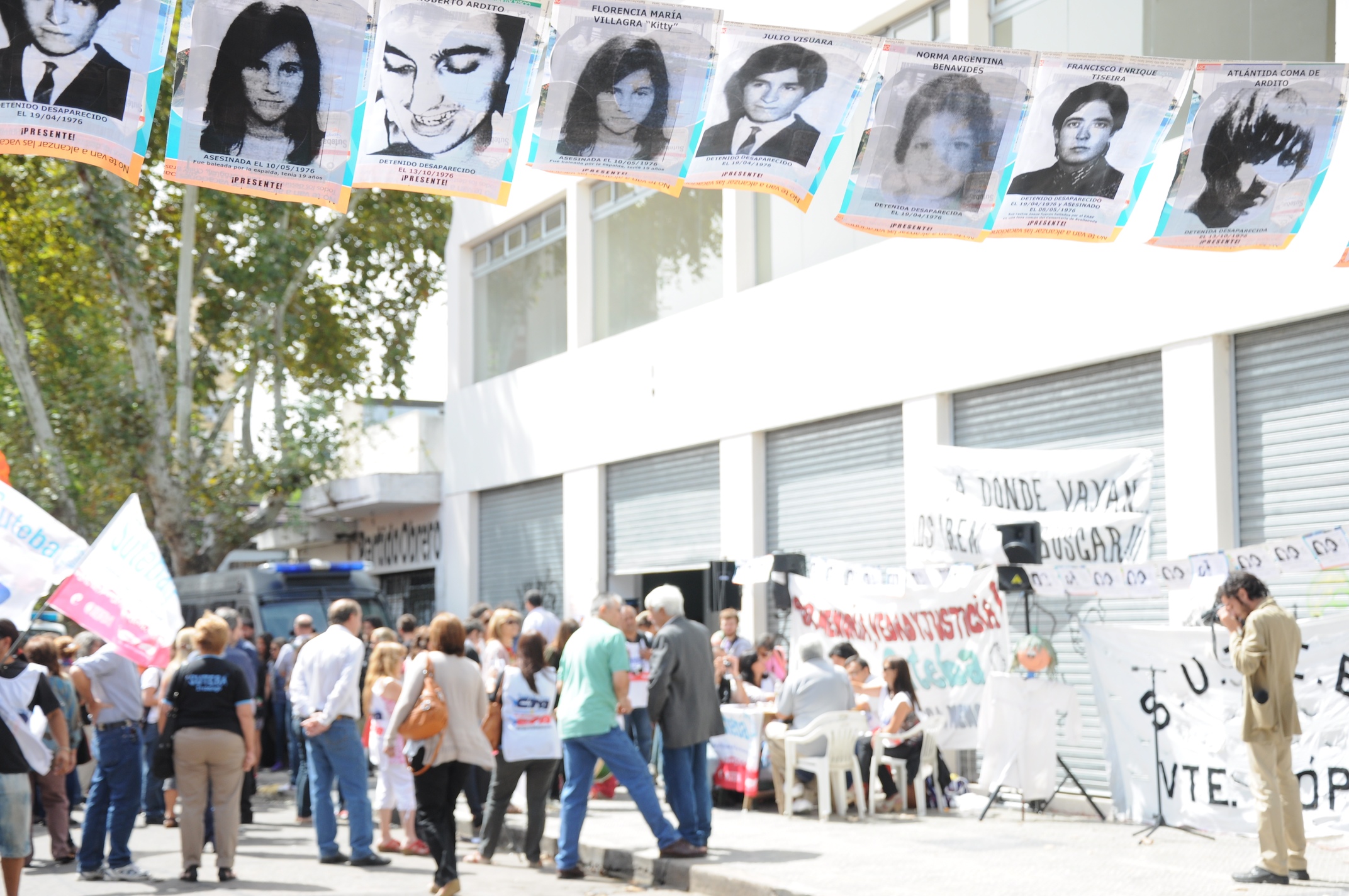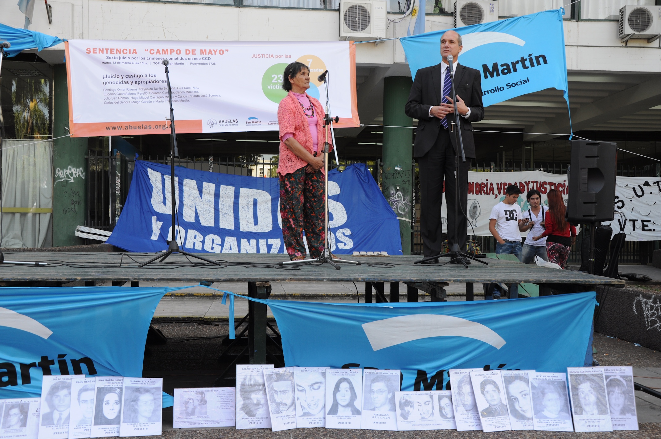 En el marco de los juicios por delitos de Lesa Humanidad cometidos en el Centro Clandestino de Detención que funcionaba en Campo de Mayo, el ex presidente de facto Reynaldo Bignone fue condenado a prisión perpetua y la misma pena se les impuso al ex jefe del Comando de Institutos Militares, Santiago Omar Riveros; al coronel retirado, Luis Sadí Pepa; al general de Brigada, Eduardo Corrado y al coronel Carlos Macedra. Además, el Tribunal Oral Federal N°1 de San Martín condenó al ex oficial de Inteligencia del Ejército, Carlos José Somoza, a la pena de 25 años de prisión; a los oficiales de Gendarmería, Hugo Castagno Monge y Julio San Román, a 20 años; al general de división retirado Eugenio Guarañabens Perelló a 16 años; al ex oficial de Inteligencia del Batallón 601, Carlos del Señor Hidalgo Garzón, a 15 años; y a su esposa María Francisca Morillo, a 12 años. El SUTEBA estuvo presente y acompañó a los familiares en la sentencia.