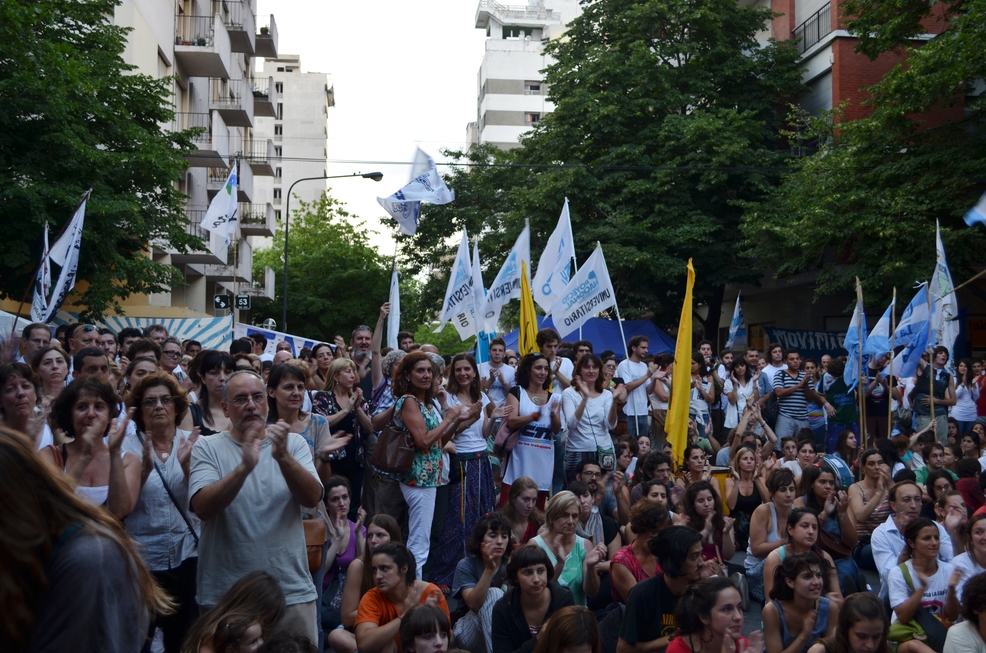 19/12/12 El represor y ex ministro de Gobierno de la provincia de Buenos Aires durante la última dictadura, Jaime Smart, fue condenado a prisión perpetua en el marco de la causa por el Circuito Camps. Además, se ordenó arrestar al ex ministro de Justicia Alberto Rodríguez Varela.Estuvieron presentes en la sentencia Rosana Merlos, Secretaria de Derechos Humanos del SUTEBA, la Secretaria General de SUTEBA La Plata, Graciela Saad y numerosos compañeros de toda la zona. A la espera de la sentencia, hubo stands (entre los que se encontraban los de SUTEBA y CTA Bs As), una radio abierta y recitales de distintas bandas.