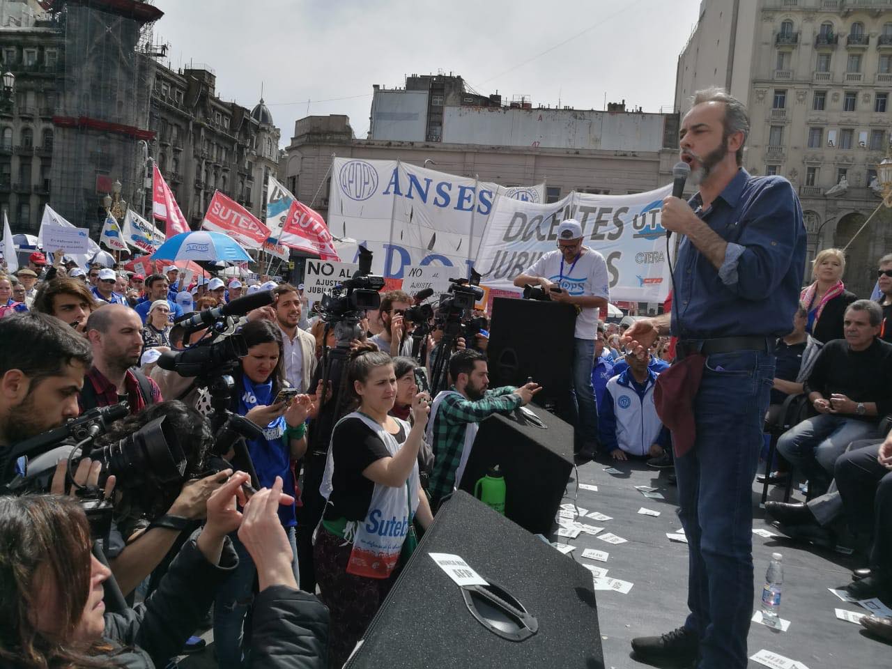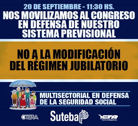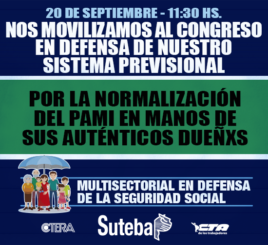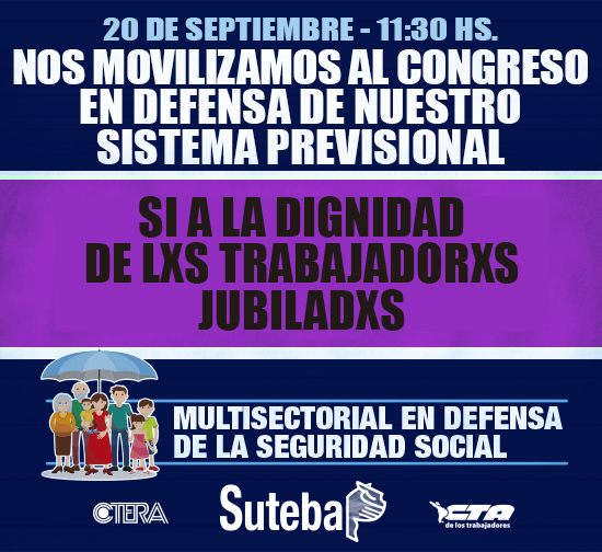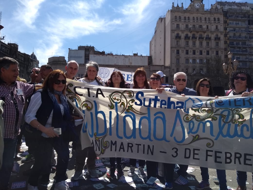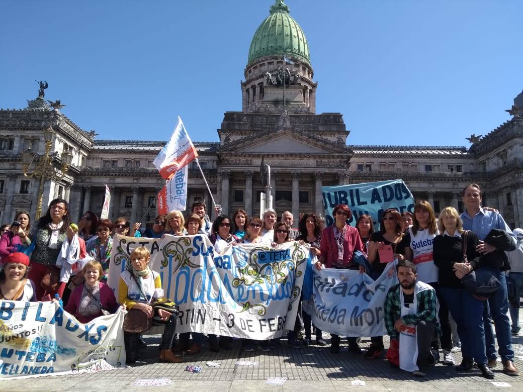 En un nuevo aniversario del Día del Jubiladx, el SUTEBA, en el marco de la Multisectorial en Defensa de la Seguridad Social, participó junto a diversas organizaciones sindicales y sociales de una jornada de protesta frente al Congreso de la Nación.