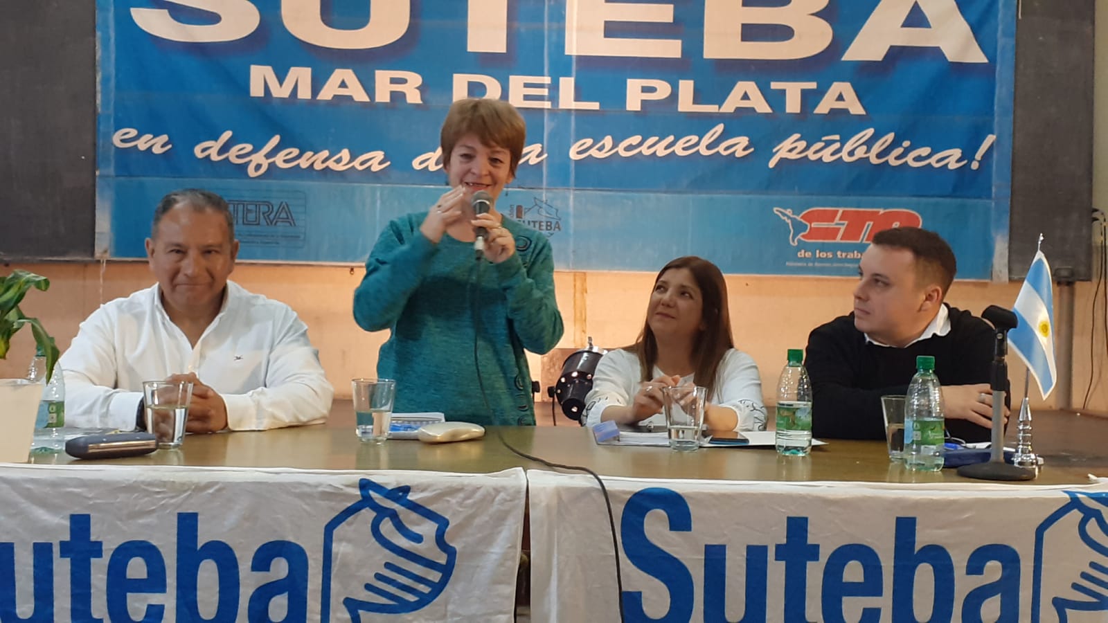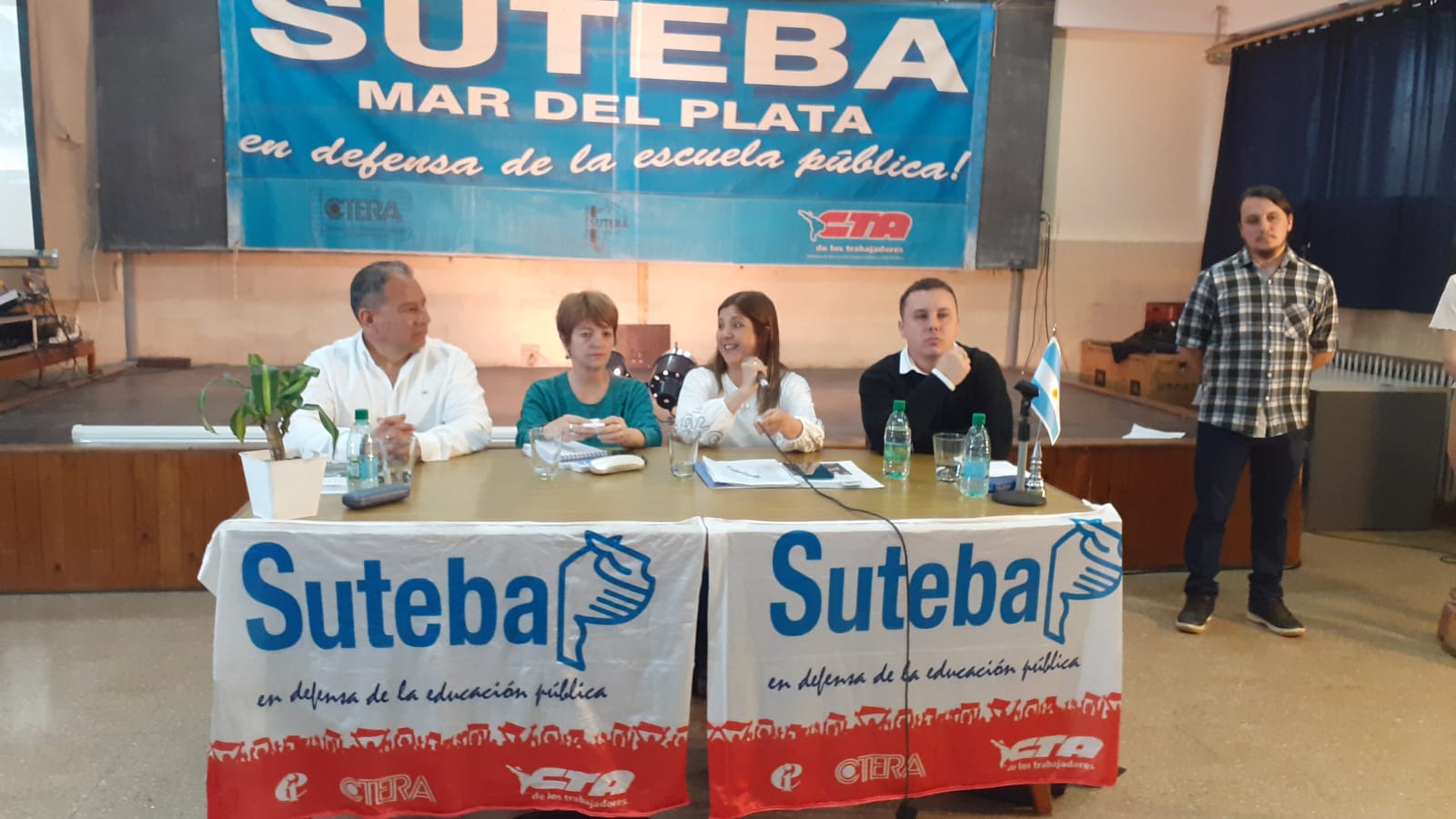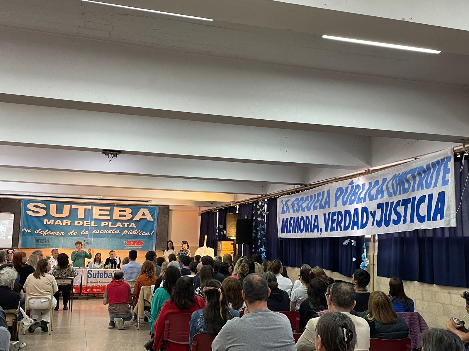Participaron de la presentación la Secretaria General Adjunta del SUTEBA, María Laura Torre; la Secretaria de Educación, Sandra Ramal, junto a compañerxs de la Seccional Mar del Plata, Santos Ibáñez, Secretario General; y Juan García, Secretario de Educación; Docentes y Estudiantes.