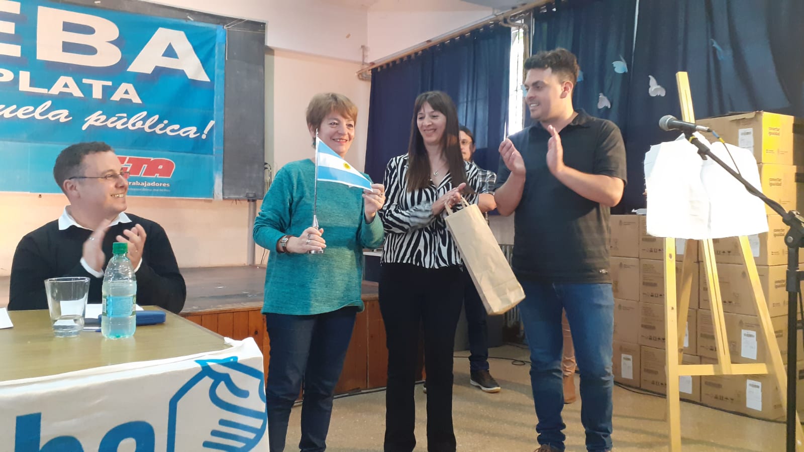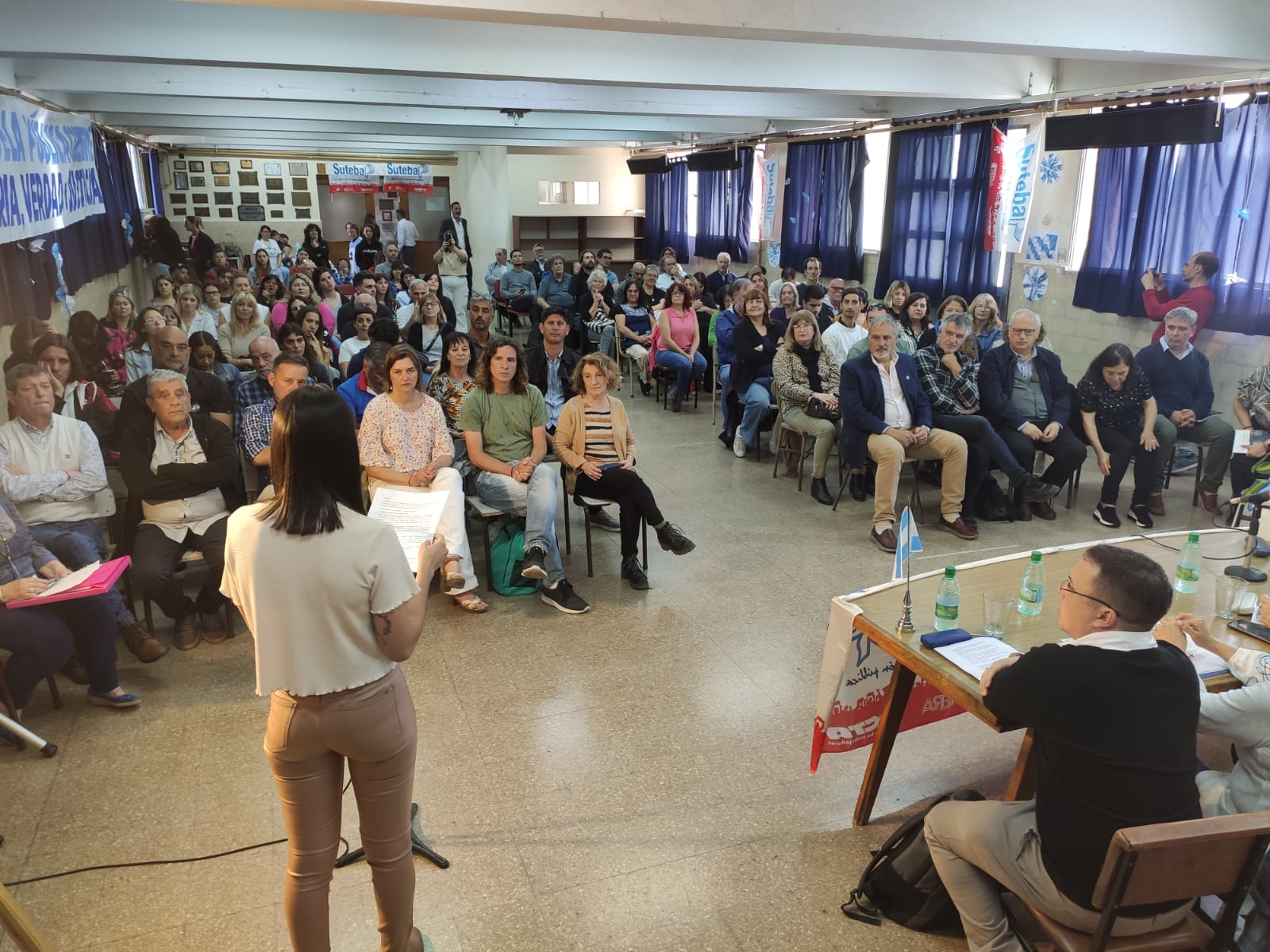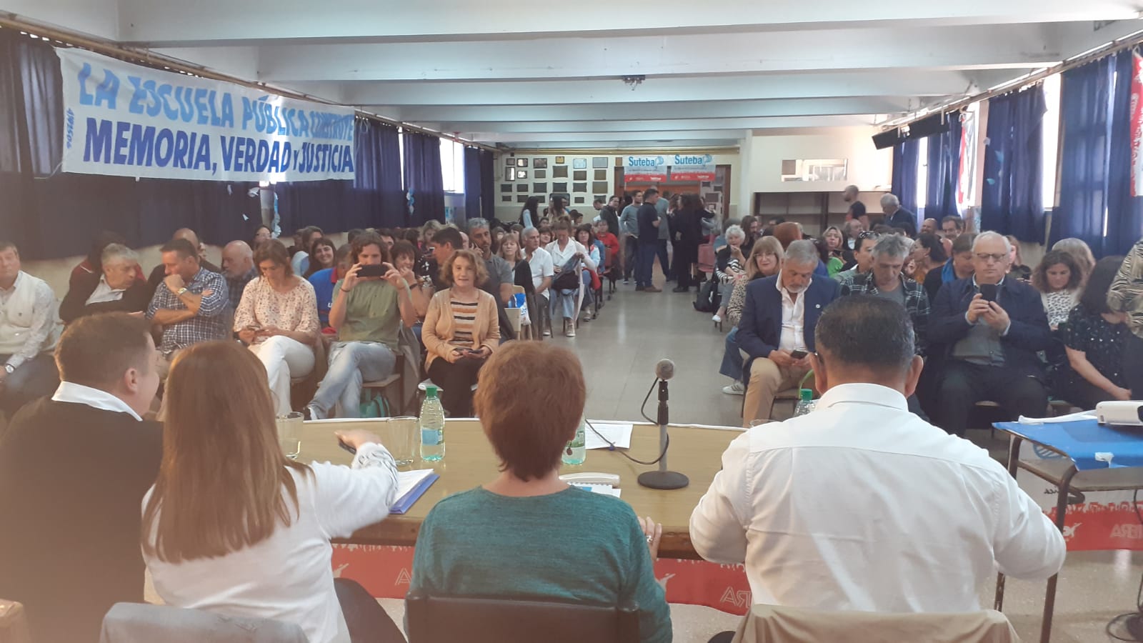 Participaron de la presentación la Secretaria General Adjunta del SUTEBA, María Laura Torre; la Secretaria de Educación, Sandra Ramal, junto a compañerxs de la Seccional Mar del Plata, Santos Ibáñez, Secretario General; y Juan García, Secretario de Educación; Docentes y Estudiantes.