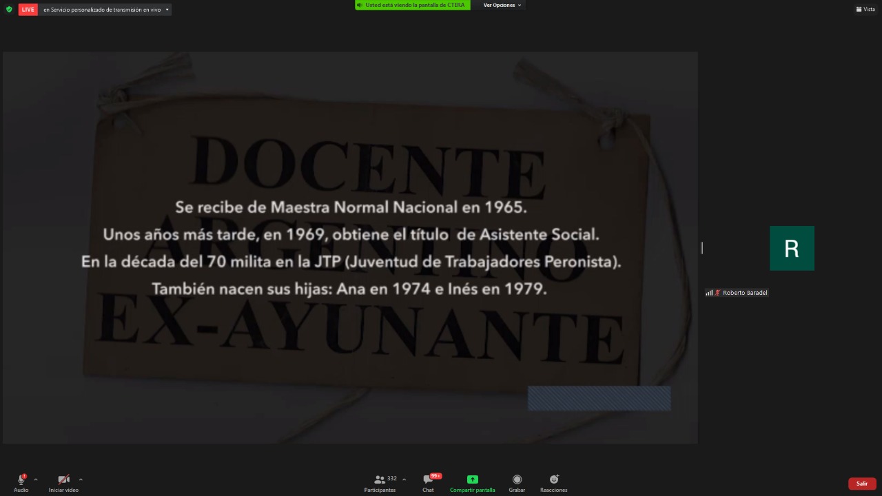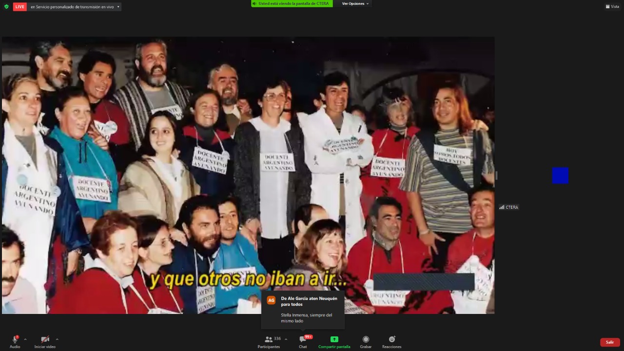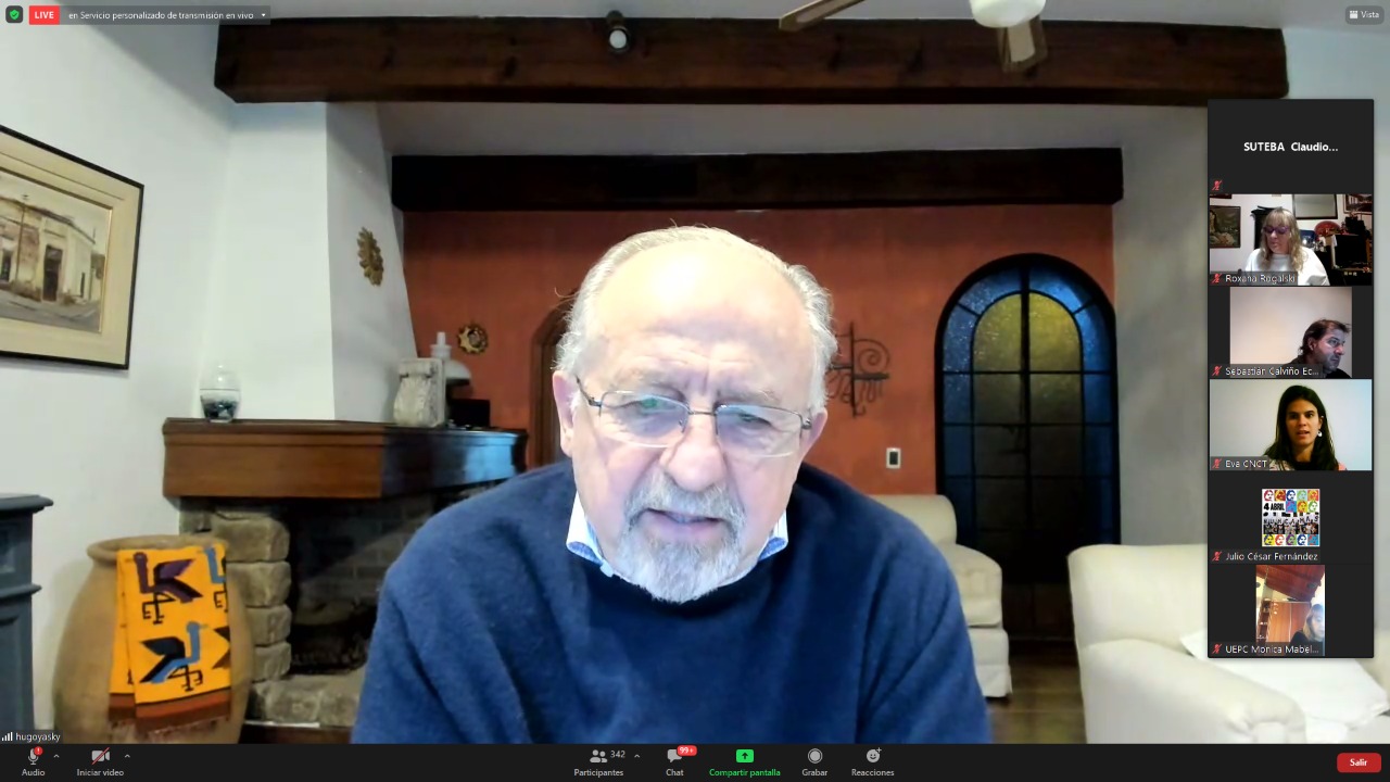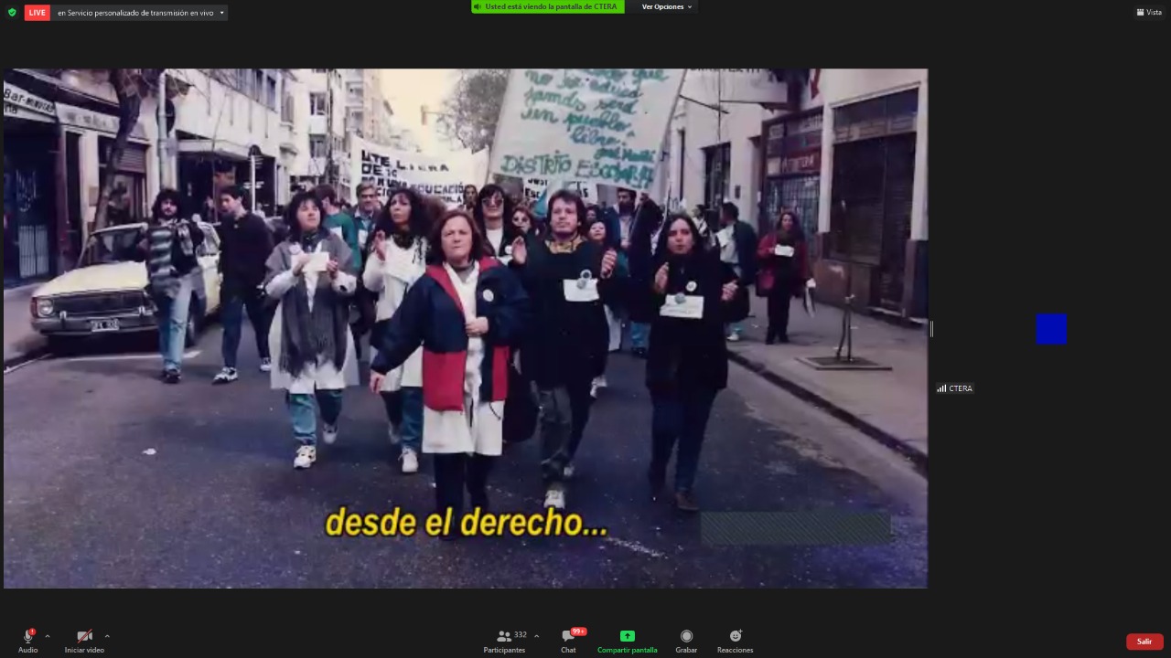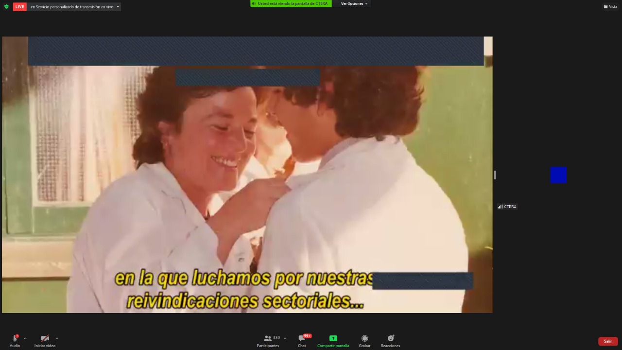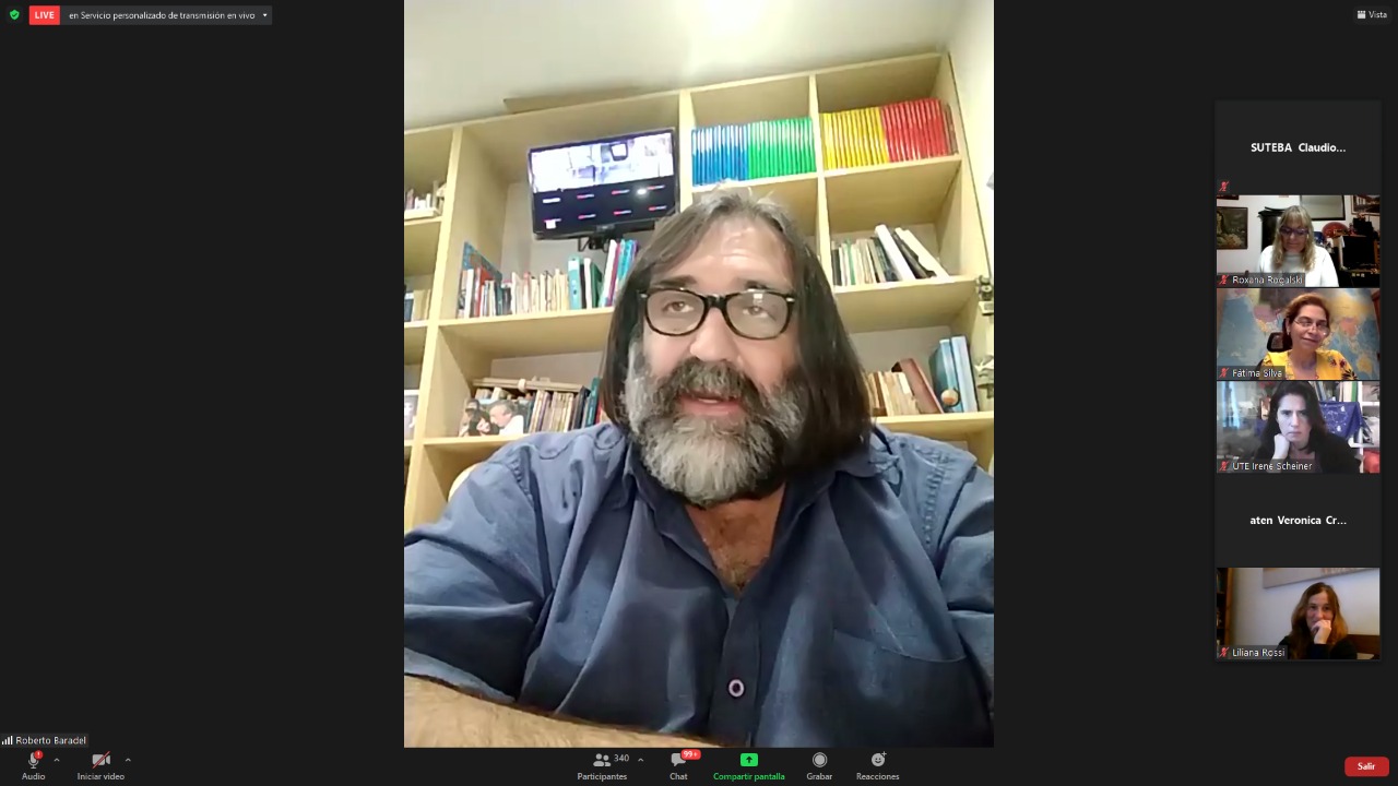 El encuentro contó con la participación de Hugo Yasky, Secretario General de la CTA de lxs Trabajadorxs y Presidente del Comité Regional de la Internacional de América Latina; Sonia Alesso, Secretaria General de la CTERA y miembro del Comité Ejecutivo Mundial de la IE por América Latina; Roberto Baradel, Secretario General del SUTEBA y Secretario General Adjunto de la CTERA; Elizabeth Gómez Alcorta, Ministra de las Mujeres, Géneros y Diversidad (MMGD) de la Nación; Fátima Silva, Vicepresidenta del Comité Regional de la Internacional de la Educación de América Latina; actuando como moderadora Roxana Rogalski, Secretaria de Género e Igualdad de Oportunidades de CTERA.