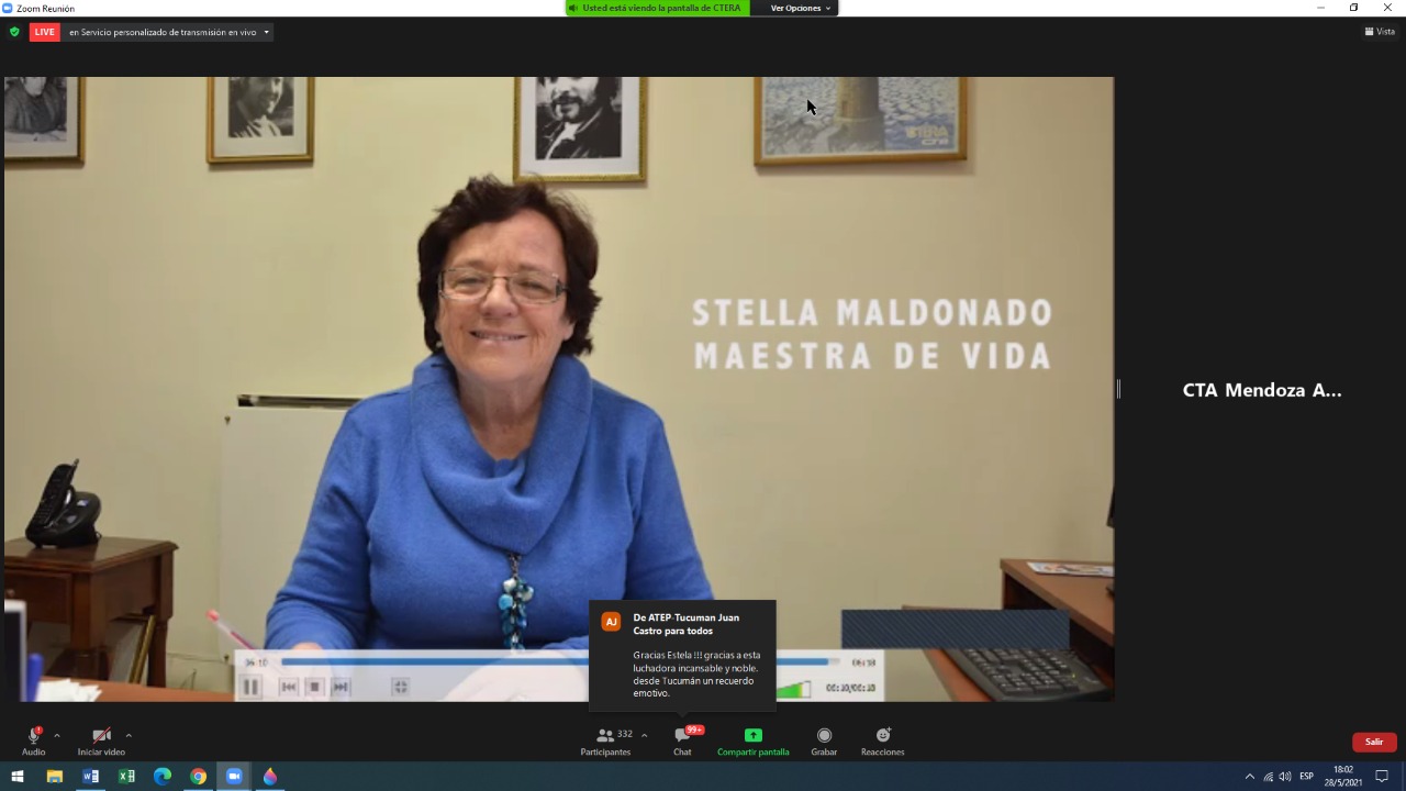 "Vamos construyendo una organización que tiene que ver con cuestionar y deconstruir determinados parámetros que nos han impuesto, y transformar la realidad. Y hemos aportado también al enorme movimiento de mujeres que es un orgullo en el mundo. Stella Maldonado, ¡presente, ahora y siempre!", concluyó Baradel.