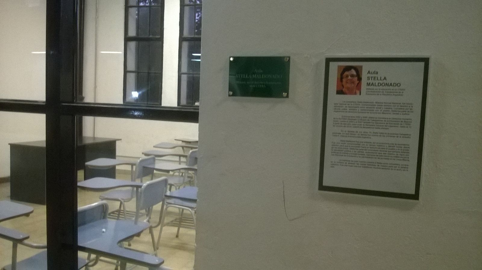 El viernes 18, en la Casa de la Militancia de H.I.J.O.S. ubicada en el Espacio Memoria y Derechos Humanos (ex ESMA) se descubrió una placa conmemorativa en homenaje a nuestra inolvidable compañera Stella Maldonado, dándole su nombre a un aula de ese establecimiento.