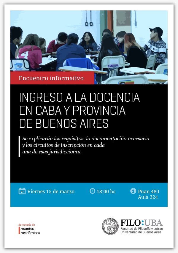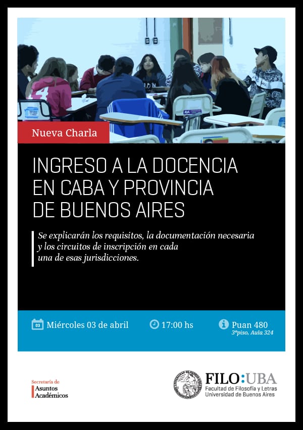Los días 15 de marzo y 3 de abril, desde la Secretaría Gremial de Educación Superior del SUTEBA, con representación a cargo del Docente Adrián Martínez, participamos de las charlas informativas a alumnxs y graduadxs de la Facultad de Filosofía y Letras de la Universidad de Buenos Aires.