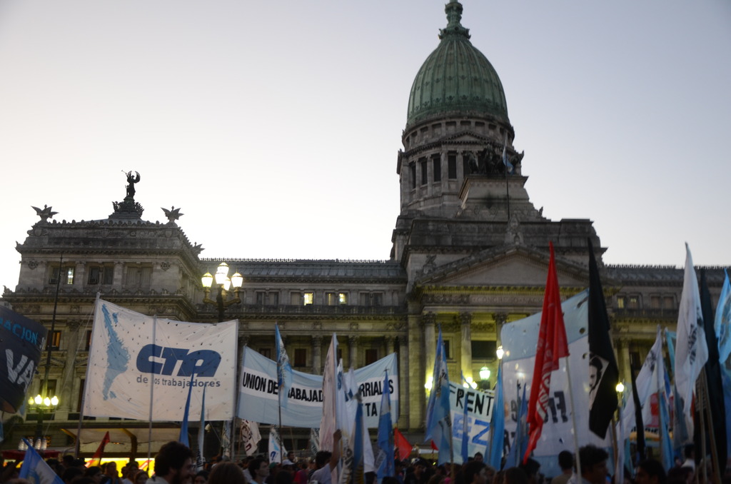 Seguidamente, a las 19 horas, se realizó un abrazo y festejo popular en Plaza de los dos Congresos. Durante el mismo, Hugo Yasky se acercó al micrófono y expresó:
