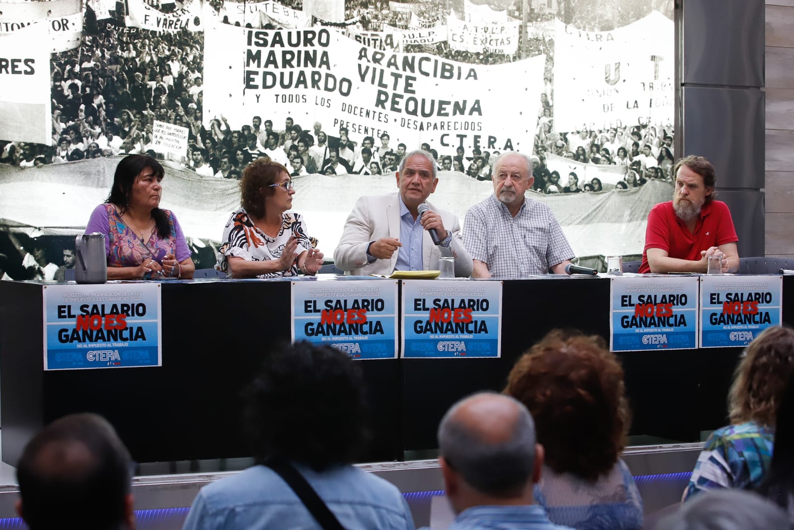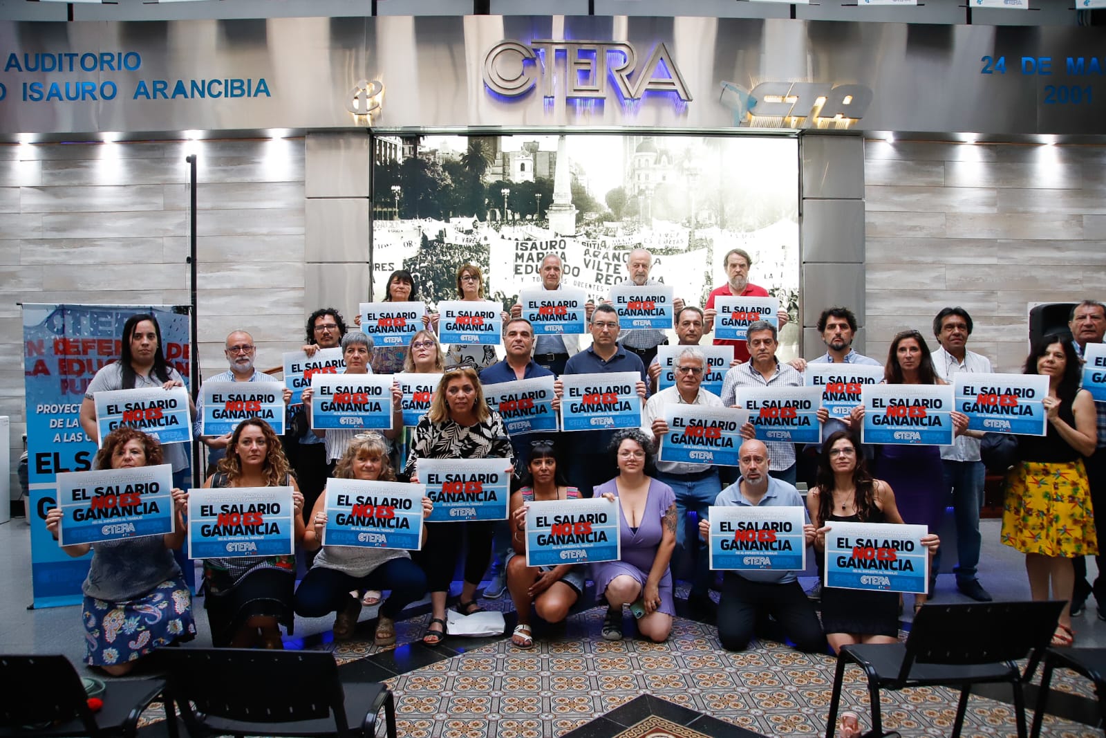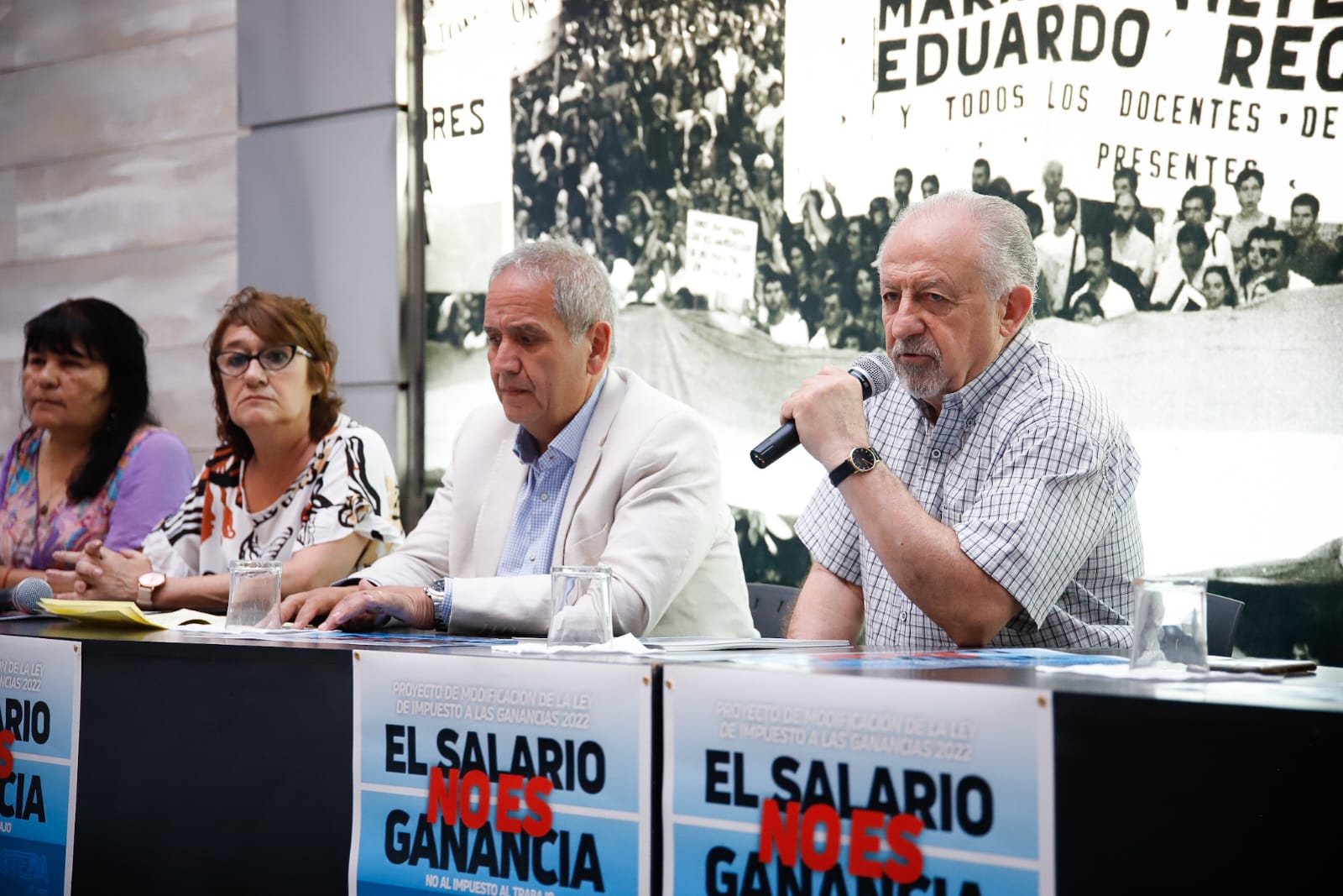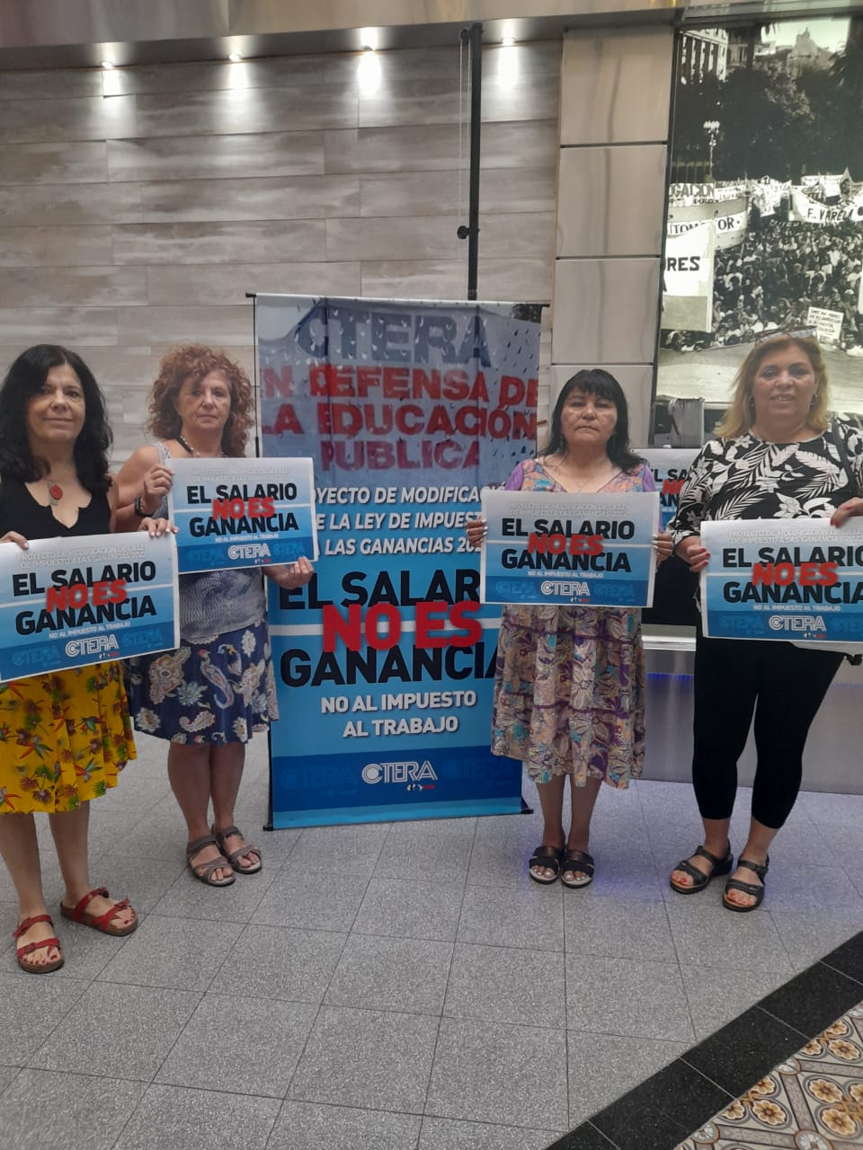 El martes 29 de noviembre, el SUTEBA asistió a la conferencia de prensa que realizó la CTERA para apoyar el proyecto de Ley de Modificación del Impuesto a las Ganancias que presentó el Diputado Nacional Sergio Palazzo.