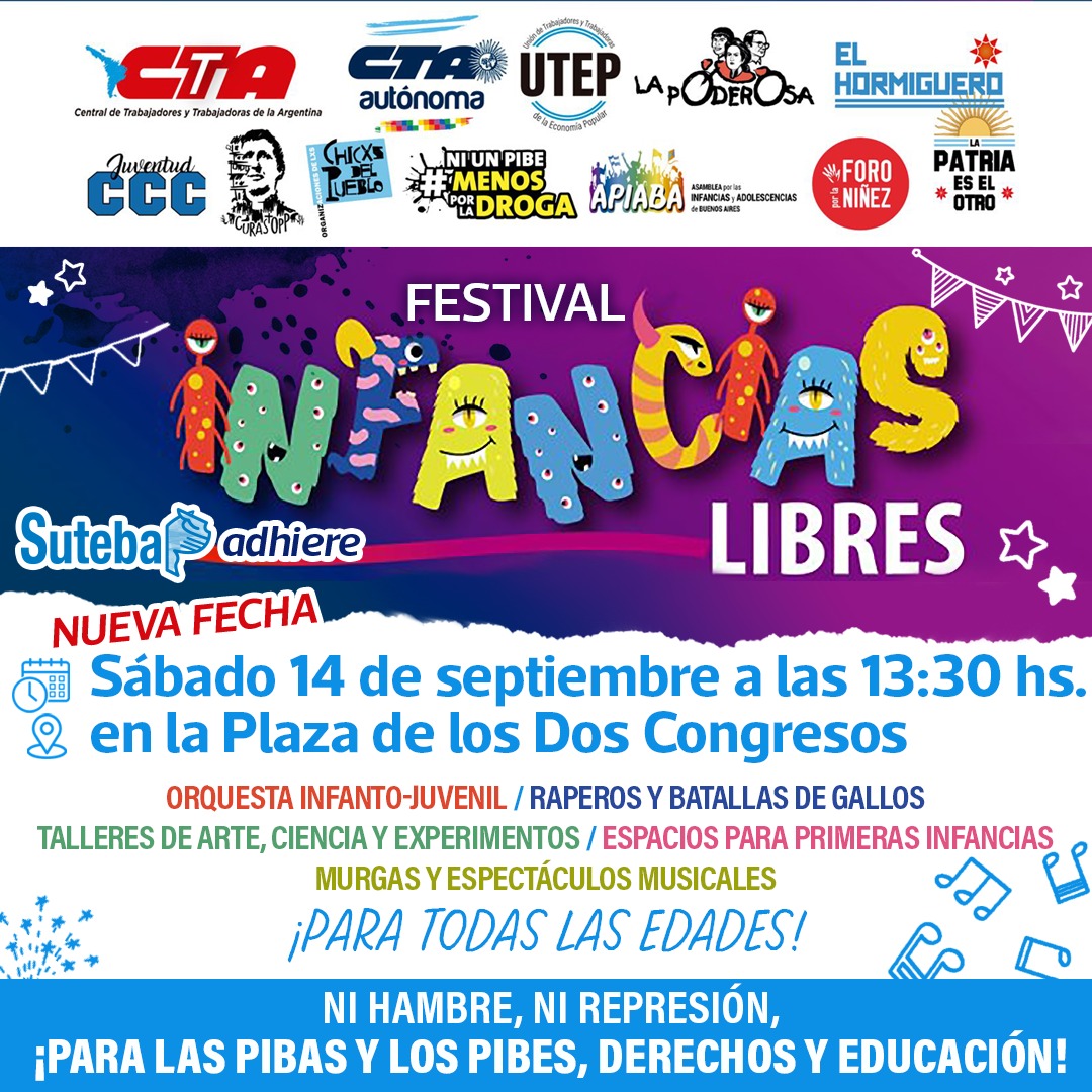 Junto a organizaciones sindicales, políticas y sociales, nos vamos a encontrar en este festival artístico, cultural, de juegos, recreación y merienda compartida, porque con infancias felices tendremos presente y futuro.