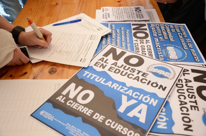 Roberto Baradel, el Secretario General del SUTEBA, tomó la palabra en la conferencia de prensa y dijo: "No queríamos dejar pasar la oportunidad de solidarizarnos con los compañeros de la UTE, porque están dando una lucha heróica, ya hace unos cuántos años, contra las políticas neoliberales que aplica el gobierno de Macri, contra el ajuste en educación, la subejecución del presupuesto en infraestructura, contra la eliminación de las becas y hoy contra el cierre de cursos." Además agregó que "queda claramente expresado en esta realidad que lo que decía el gobierno de Mauricio Macri respecto del aumento a los docentes no era tal, porque estaba recortando presupuesto en otras áreas y eso la UTE no lo va a aceptar ni lo va a permitir, por eso está peleando acá. Les venimos a decir también que cuentan con todo el apoyo de los docentes de la provincia de Buenos Aires en defensa de la escuela pública."