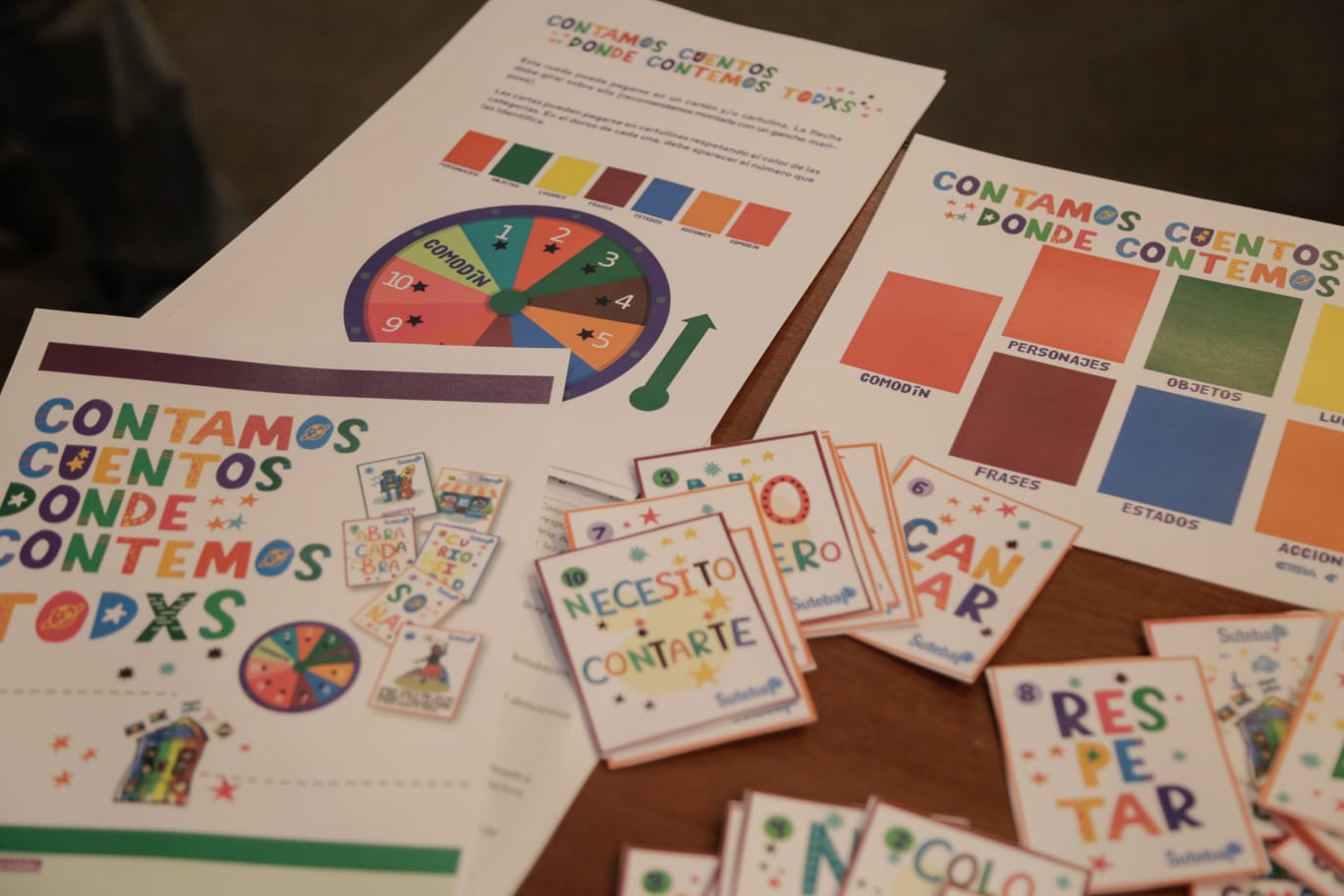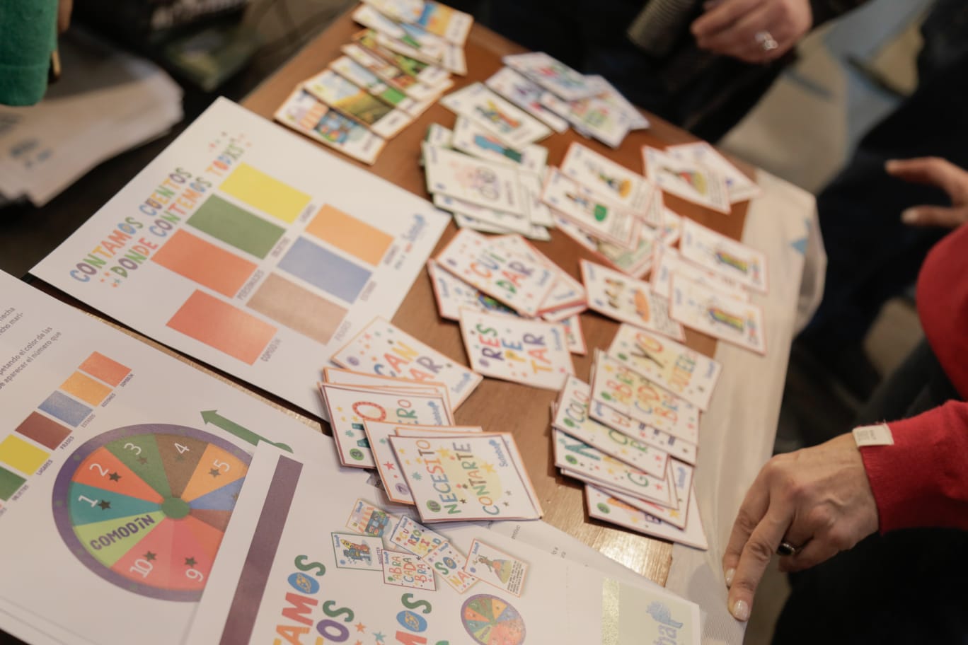 Asimismo, además de la entrega de materiales, durante la exposición se realizó el juego colectivo de cartas "Un mundo donde contemos todxs" con lxs participantes, con el objetivo de brindar herramientas pedagógicas, lúdicas y alternativas para el abordaje de la ESI.