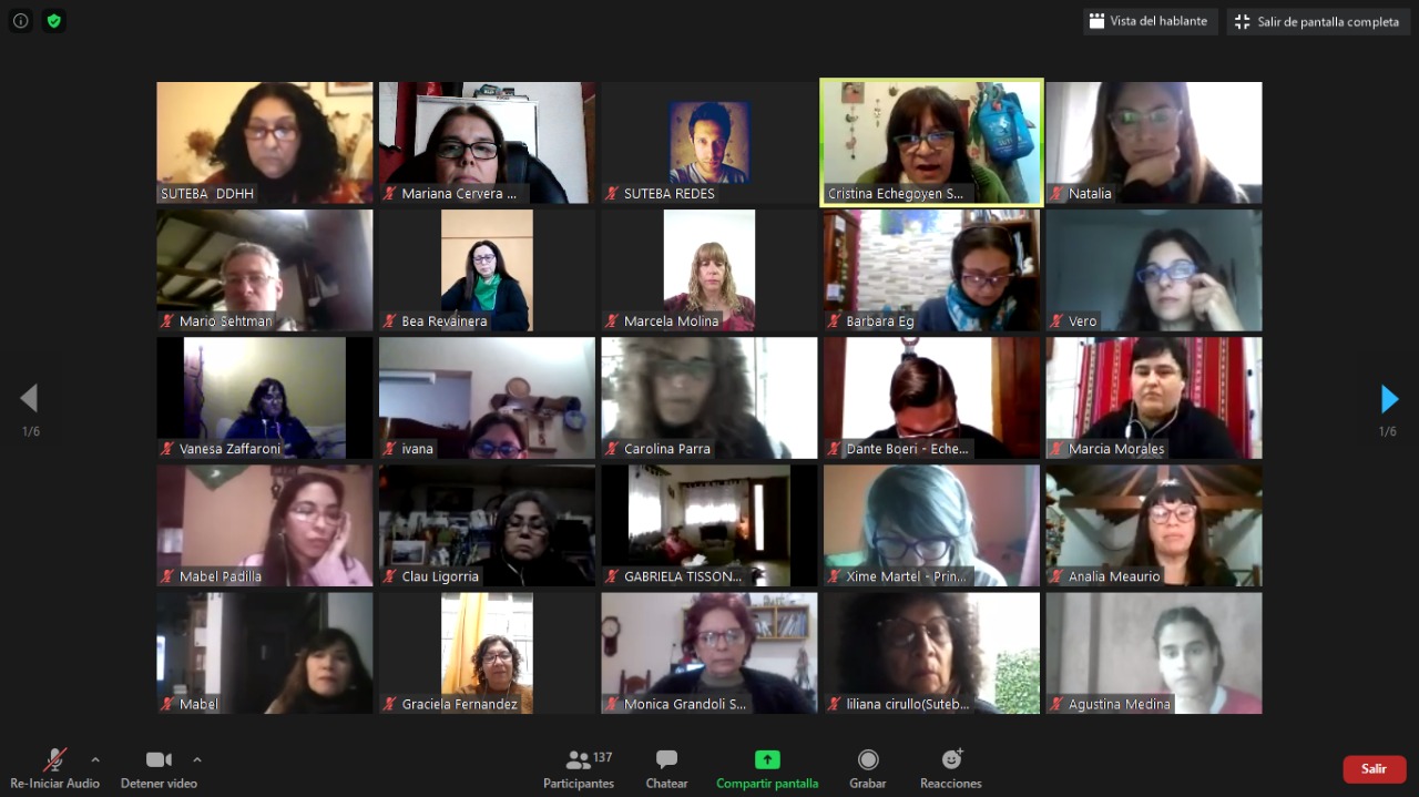 El miércoles 2 de septiembre se realizó el primer encuentro virtual del ciclo "SUTEBA, CONECTADXS CON LAS IDENTIDADES", organizado por las Secretarías de Derechos Humanos y de Igualdad de Géneros y Diversidad del SUTEBA.