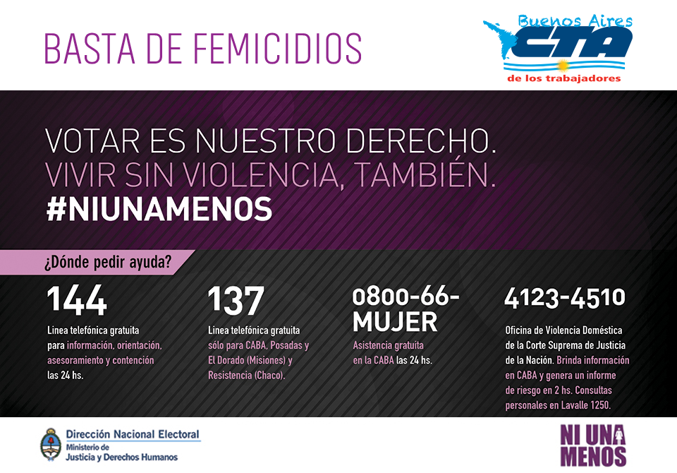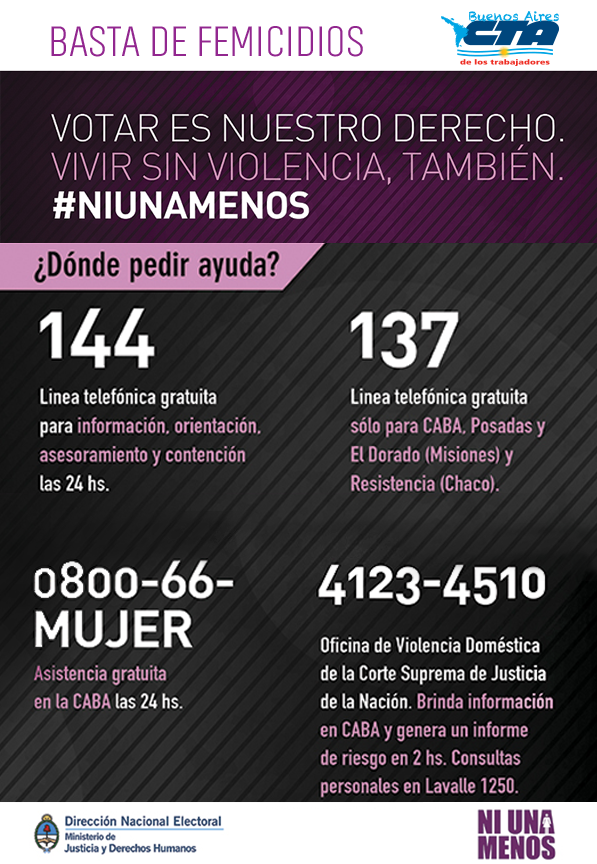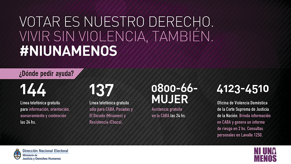 Es un muy buen momento para visibilizar la violencia hacia las mujeres y proveer a toda la comunidad de los números telefónicos de información, atención y asistencia.