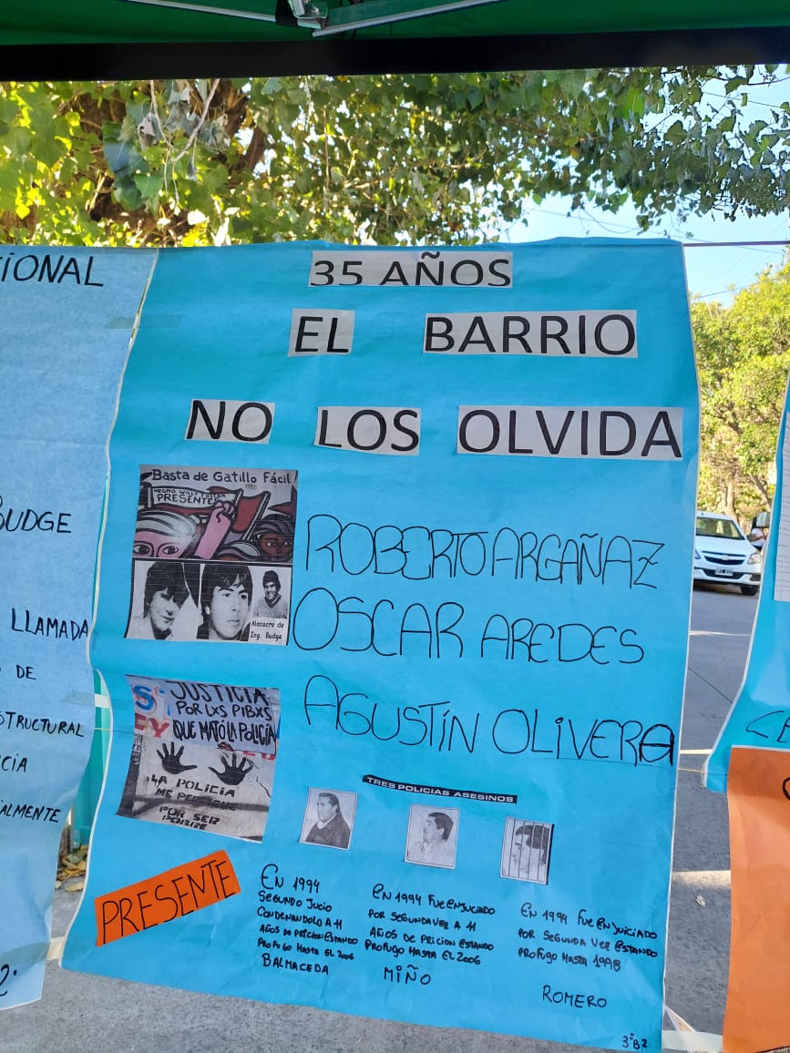 La Secretaría de DDHH del SUTEBA Provincia, representada por Mónica Grandoli, Subsecretaria a nivel provincial; dijo presente en el acto homenaje realizado el domingo 8 de mayo, en Lomas de Zamora, al conmemorarse 35 años de los asesinatos de Oscar Aredes, Roberto "Willy" Argañaraz y Agustín Olivera, hecho conocido como la "Masacre de Budge" y por el cual se instituyó en 2013 el "Día Nacional de la Lucha Contra la Violencia Institucional".