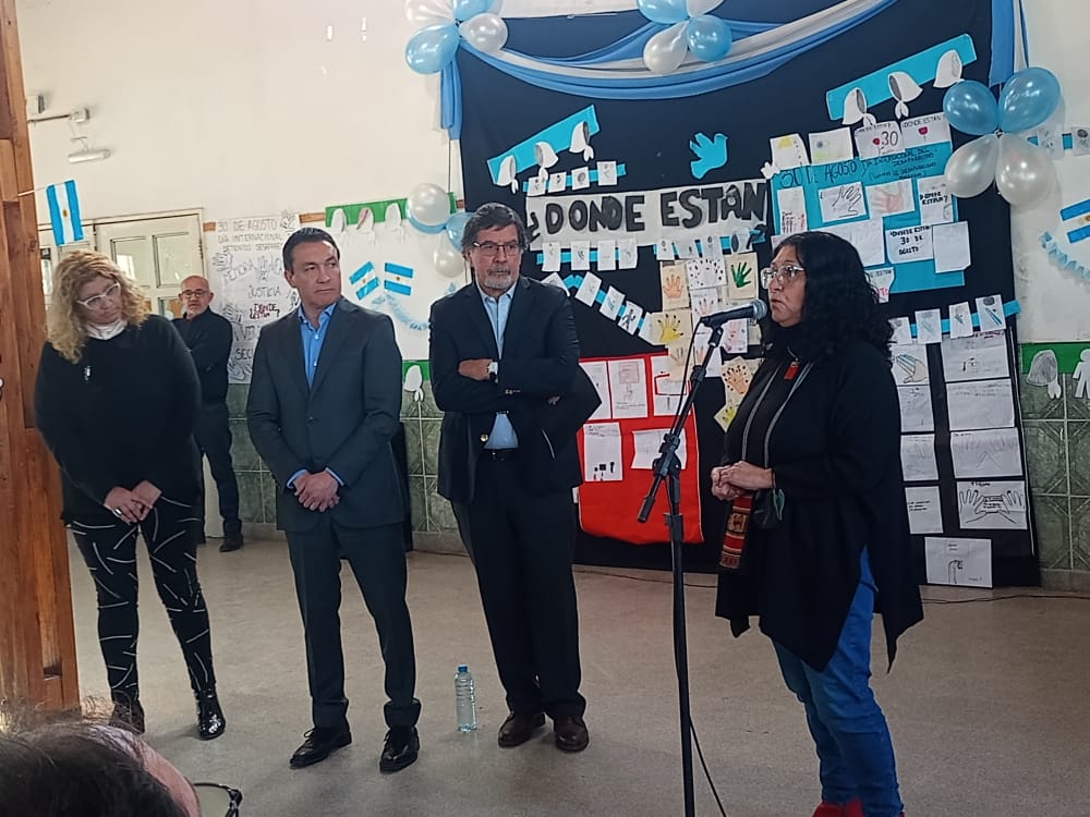 "Este es un ACTO DE JUSTICIA Y REPARACIÓN HISTÓRICA, SIMBÓLICA, SOCIAL Y FAMILIAR ante el dolor, el silencio y el ocultamiento de tantos años" expresó Patricia Romero Díaz, Secretaria de DDHH del SUTEBA, quien habló en nombre de las Organizaciones Sindicales integrantes de la Comisión de la Verdad Histórica, poniendo en valor que haya sido el Estado Provincial, a través de la DGCyE, quien convocó a los Sindicatos a retomar las actividades de la misma cuando habían sido suspendidas durante el Gobierno de María Eugenia Vidal.