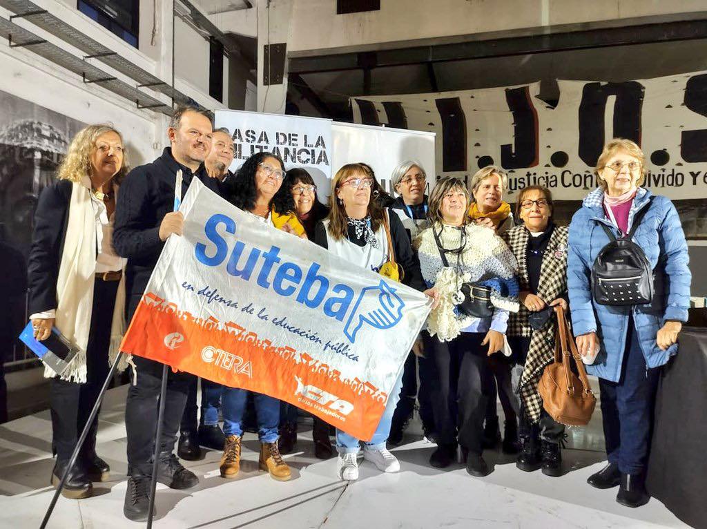 Estuvieron presentes en el acto: Patricia Romero Díaz y Analía Meaurio, Secretaria y Subsecretaria de Derechos Humanos del SUTEBA; junto a compañerxs de la Intersindical de DDHH y representantes del SUTEBA San Isidro.
