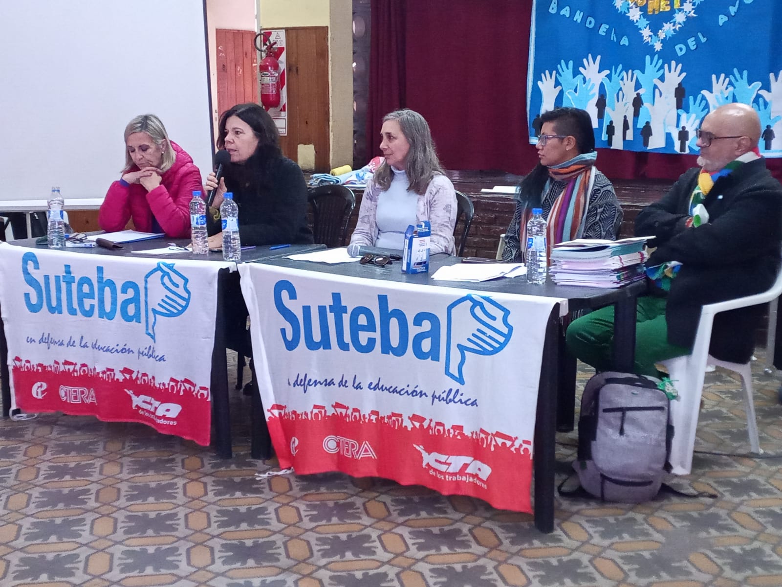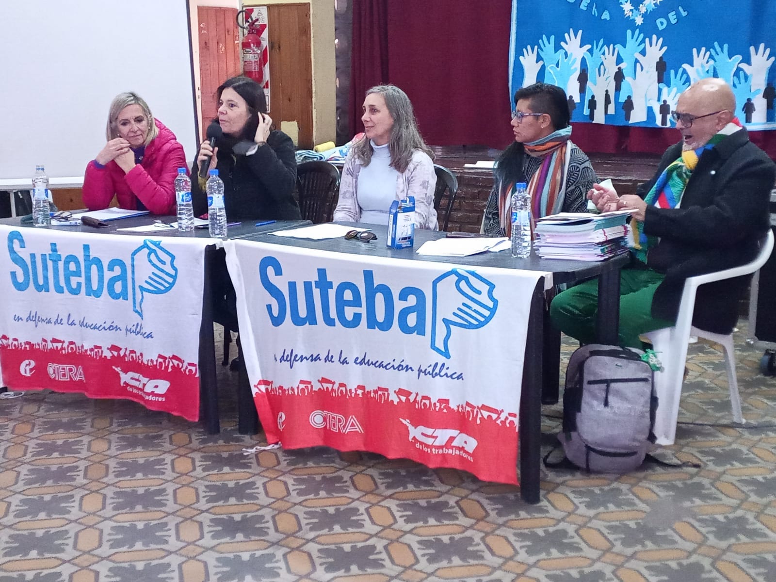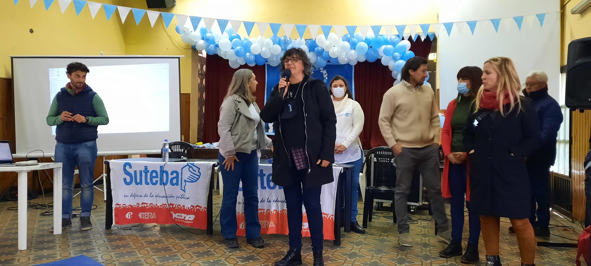La reunión convocada por SUTEBA de Esteban Echeverría fue conducida por Dante Boeri, Secretario General; Karina Bárbara, Secretaria General Adjunta; y Dalma López, Secretaria de Comunicaciones; también asistió una delegación del SUTEBA Ezeiza, encabezada por su Secretario General, Christian Ardiles.