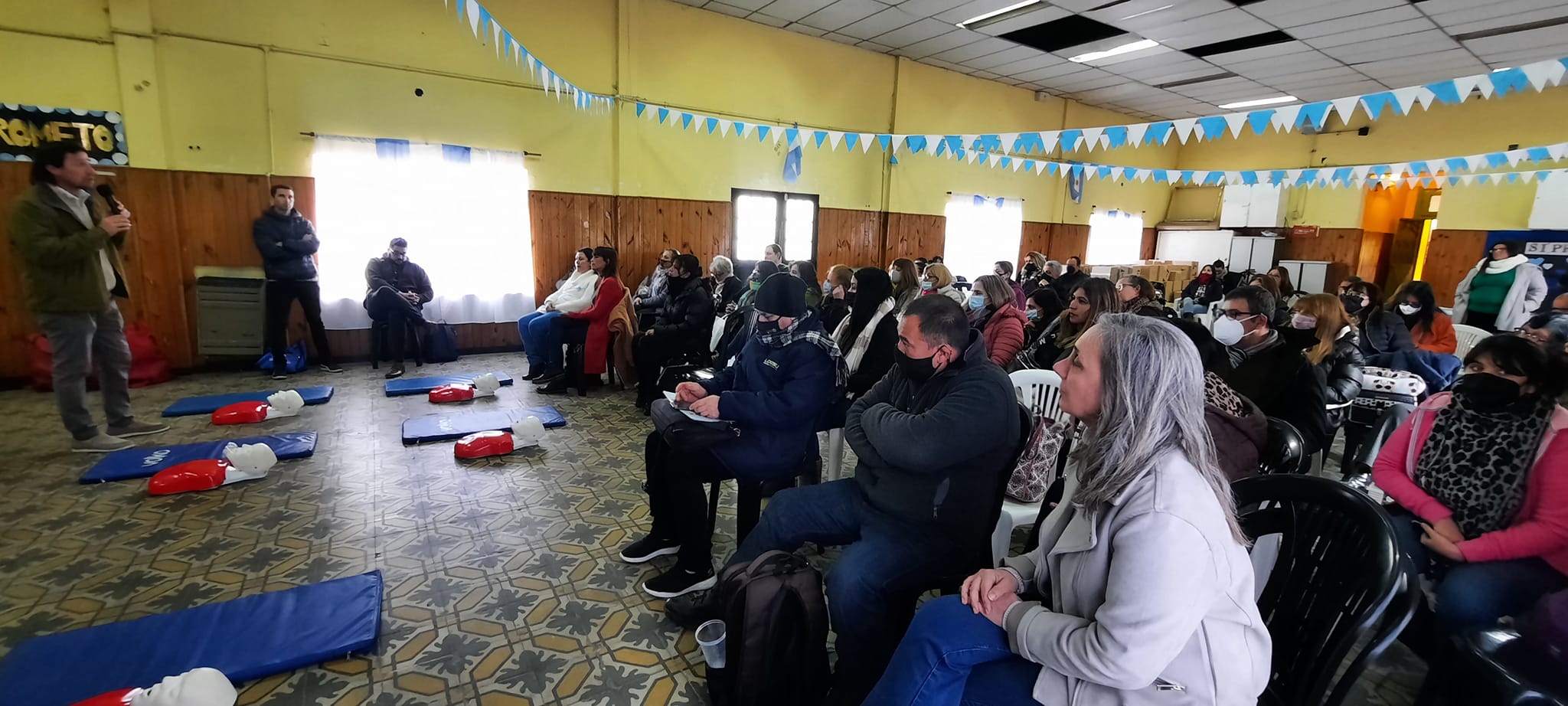 Por la tarde se realizó una capacitación de RCP de la mano de Alejandro Villanueva, Secretario de Educación Física, y Ariel Valcarlos, Subsecretario de Interior. La práctica la llevó adelante Juan Pablo Valía, Director del CEF N° 74, Profesor de Educación Física y Guardavidas Nacional. Nos acompañó en el cierre la Secretaria de Salud Laboral, Marisa Barromeres.
