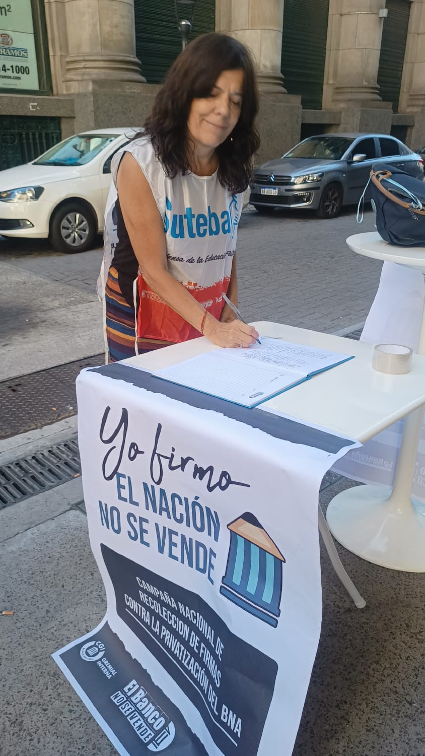 Cabe destacar que en el Plenario de Secretarixs Generales del SUTEBA, realizado el martes 20, fue votado por unanimidad el apoyo a la campaña nacional en defensa del Banco Nación.