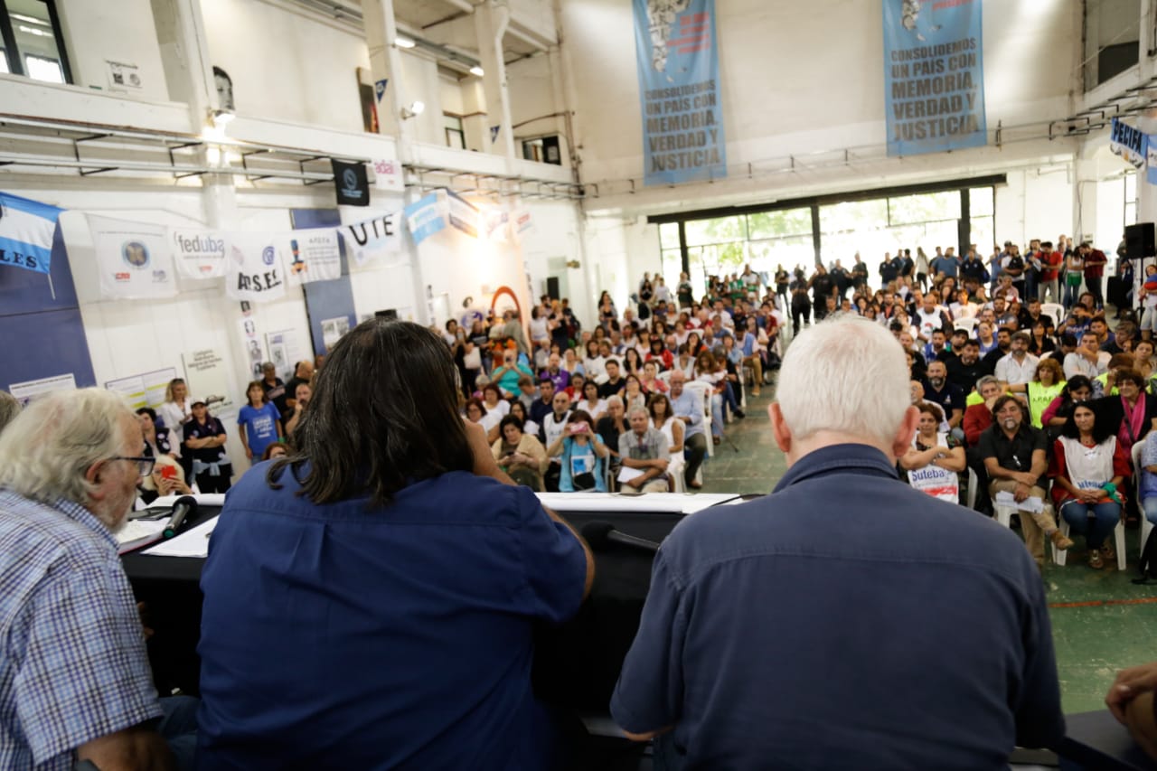 El cierre del encuentro llegó con un panel compuesto por el Secretario General de la CTA de lxs Trabajadorxs, Hugo Yasky; el Secretario General de la Federación Gráfica, Héctor Amichetti, y la Secretaria General Adjunta de la CTA Autónoma, Dora Martínez.