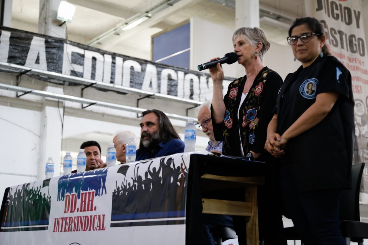 María Reigada sostuvo: "Hemos logrado una Mesa Intersindical con mucha fuerza y organización, que empezó a organizar nuestras luchas en la calle y que hoy nos permite generar este debate e incorporar en muchos sindicatos las políticas de DDHH que tenemos que atravesar en las distintas luchas. Lo que hoy vivimos en la calle, la represión, la persecución a nuestrxs sindicalistas, a lxs Delegadxs y a lxs Trabajadorxs; todo lo que está pasando hay que abarcarlo, porque la defensa de los DDHH no es sólo mirando al pasado sino mirando, también, el presente".