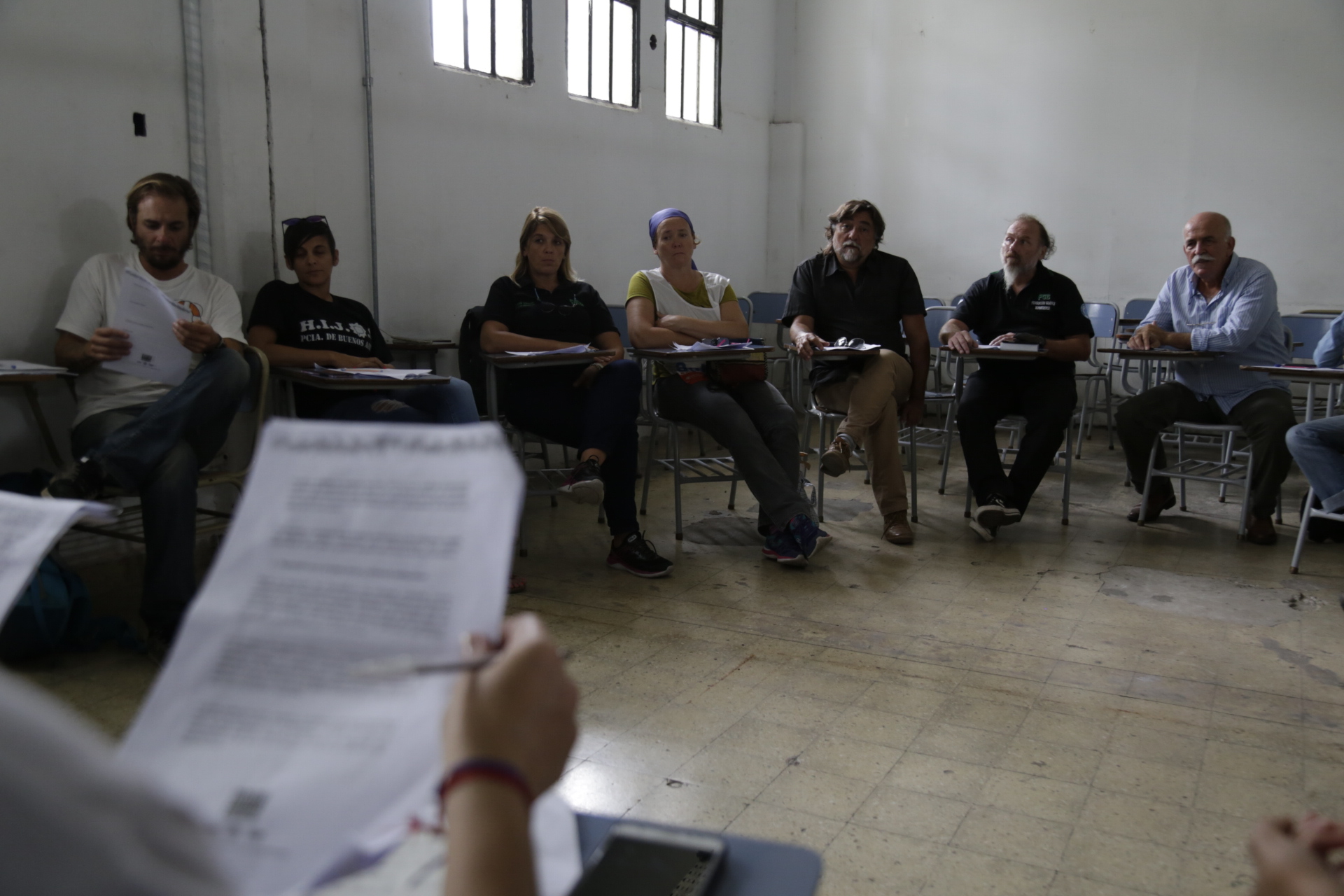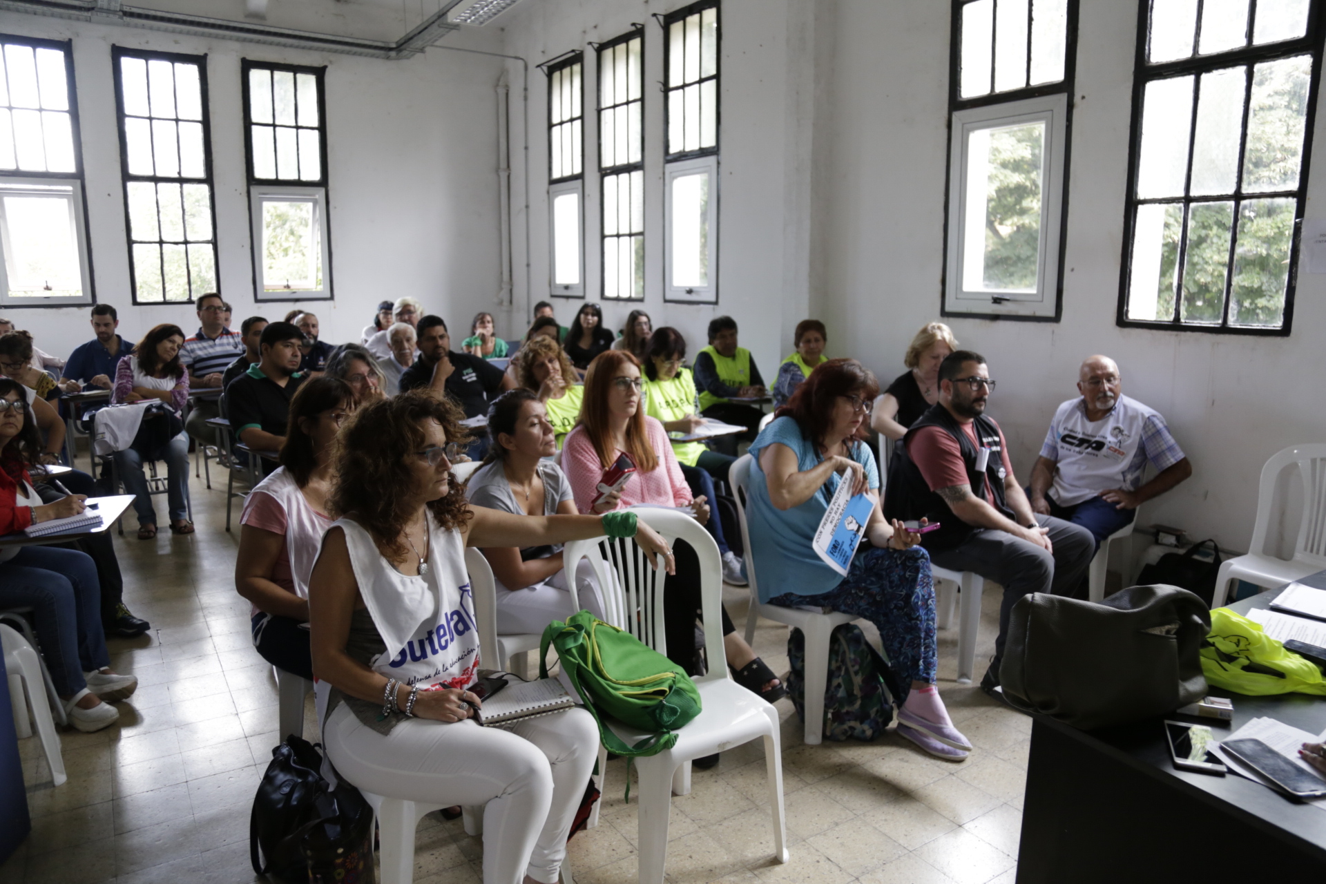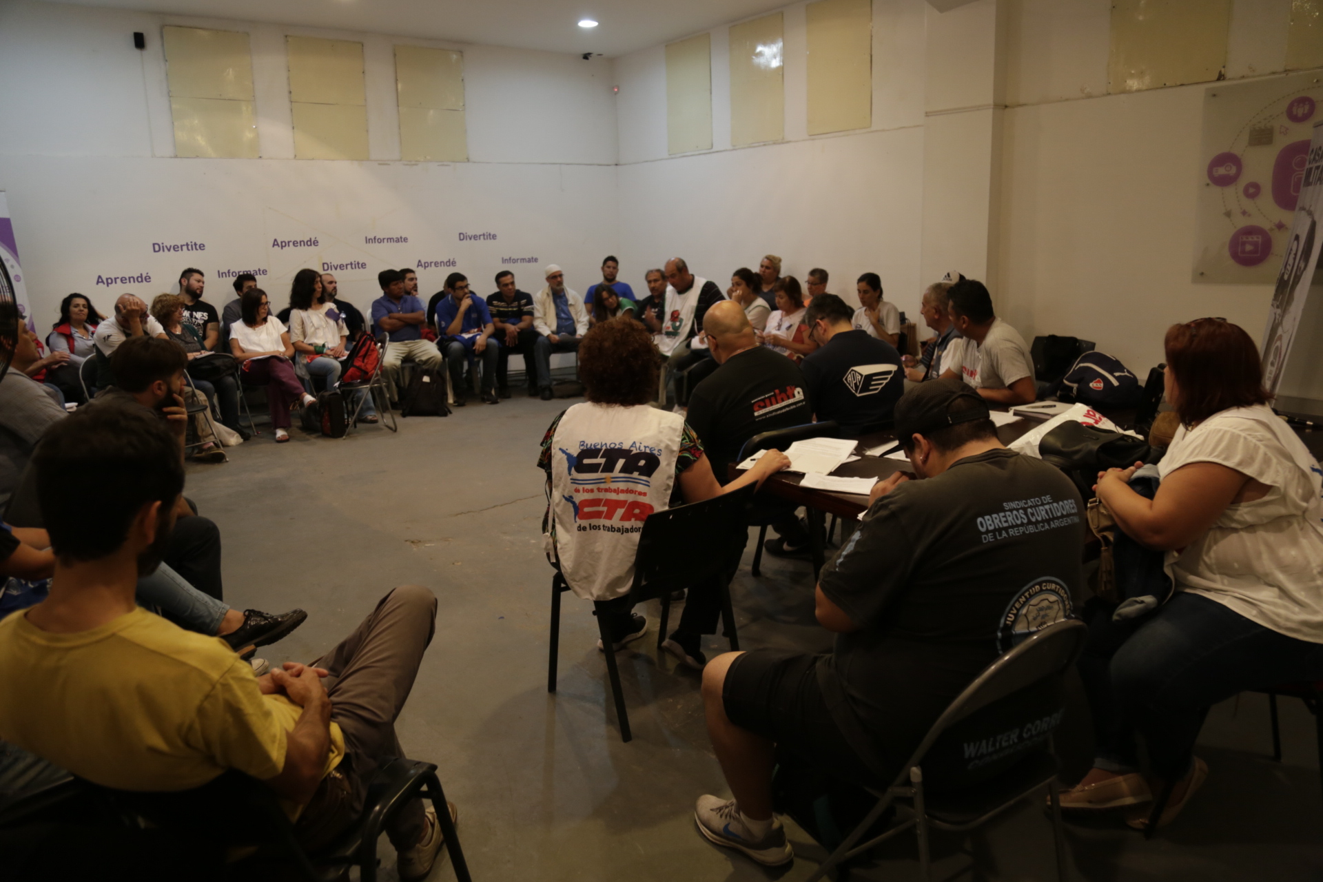 La presentación del encuentro estuvo a cargo de María Reigada, Secretaria de DDHH de CTA Provincia de Buenos Aires, y de Claudia Lázzaro, Secretaria de Género y DDHH del Sindicato de Obreros Curtidores. Gisele Tepper, integrante de H.I.J.O.S Capital, brindó unas palabras de bienvenida a la histórica jornada.