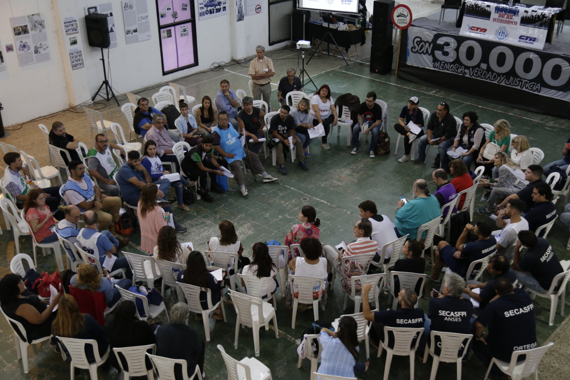 Ayer, viernes 15 de marzo, se realizó el Primer Encuentro Federal Intersindical de Derechos Humanos en el Espacio de Memoria y Derechos Humanos (ex ESMA), en la Casa de Militancia (H.I.J.O.S.). Lxs Trabajadorxs representadxs en la Intersindical de Derechos Humanos se reunieron en comisiones para profundizar y discutir las problemáticas que lxs atraviesan.