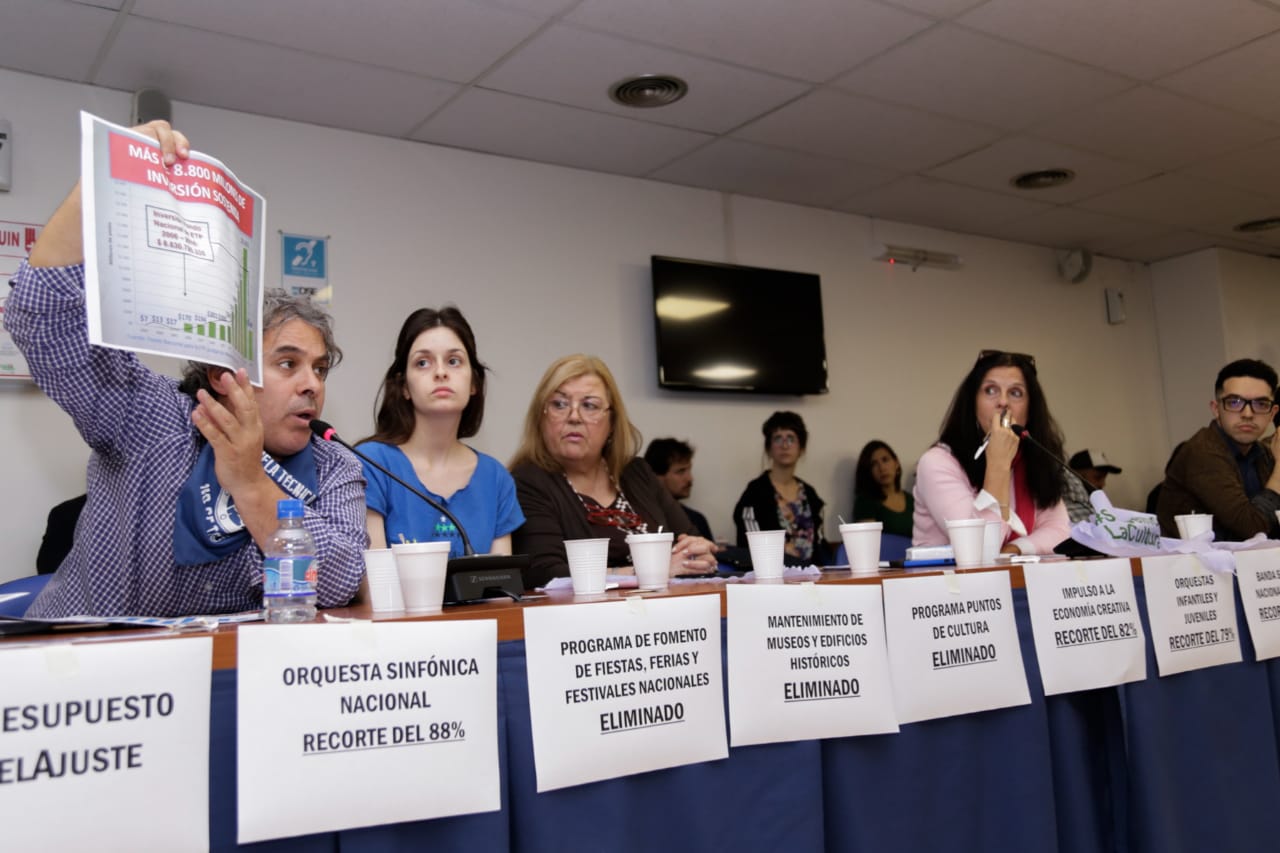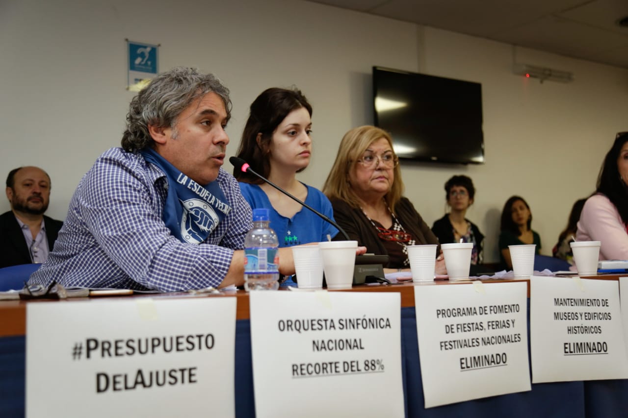 Hoy, en el anexo del Congreso Nacional, se realizó una Audiencia Pública en la que participaron distintxs representantes de la Cultura y la Educación en rechazo al Presupuesto que el Gobierno quiere aprobar para el año entrante y que representa un brutal ajuste para estas áreas.