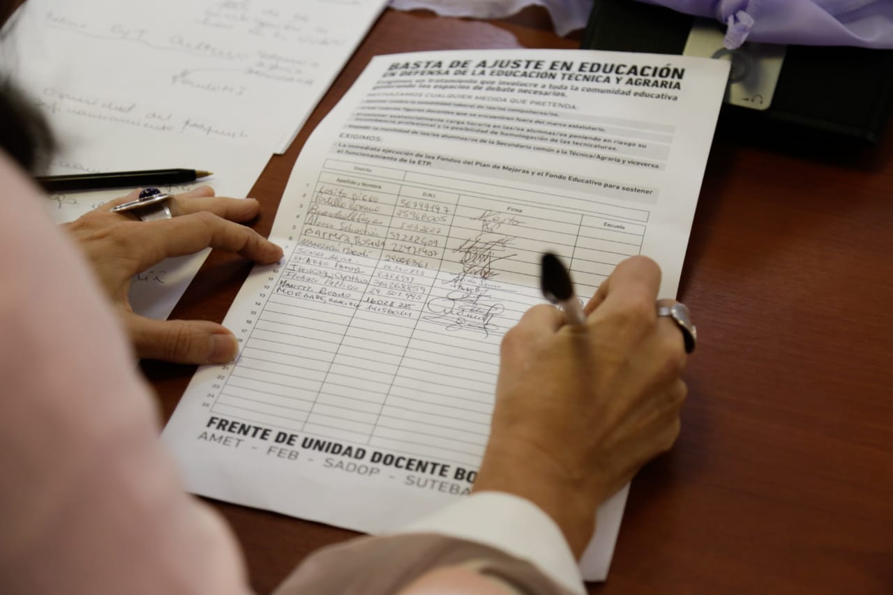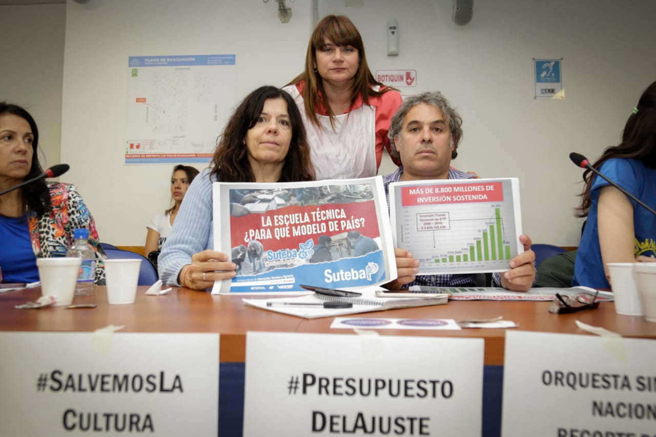 Por su parte, en representación del SUTEBA, el Subsecretario de Educación Técnica y Agraria, Gustavo Lappano, subrayó: "El brutal ajuste en Educación también llega a las Escuelas Técnicas y Agrarias. En el año 2005 se sancionó una Ley que garantizaba el sustento de nuestras Escuelas, por 10 años nuestro presupuesto fue creciendo. A partir del 2015, se subejecutaron más de 500 millones de dólares. El Presupuesto que quieren aprobar incumple la Ley aprobada en 2005 y ajusta la Educación Técnico Profesional. Denunciamos y rechazamos este Presupuesto".