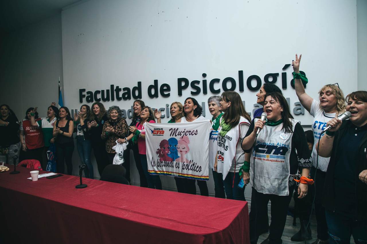 El atardecer del sábado encontró a las Trabajadoras organizadas en la CTA desbordando el auditorio de la Facultad de Psicología en el Plenario de las Trabajadoras en unidad, junto a la CFT - CGT y CTEP.