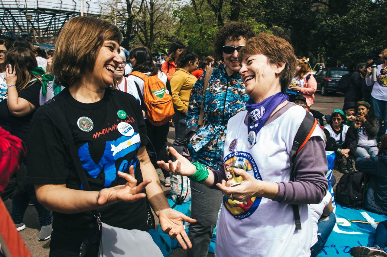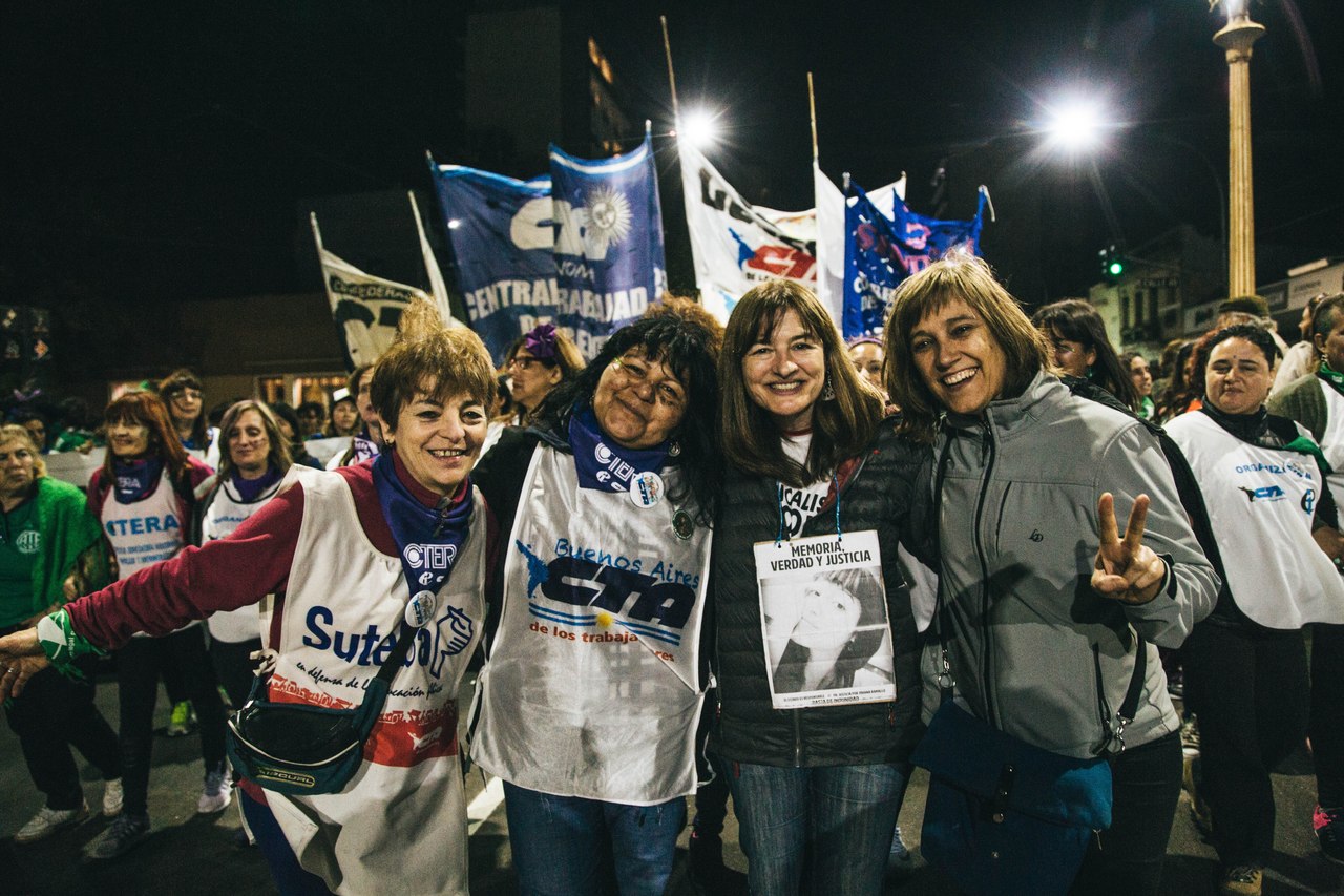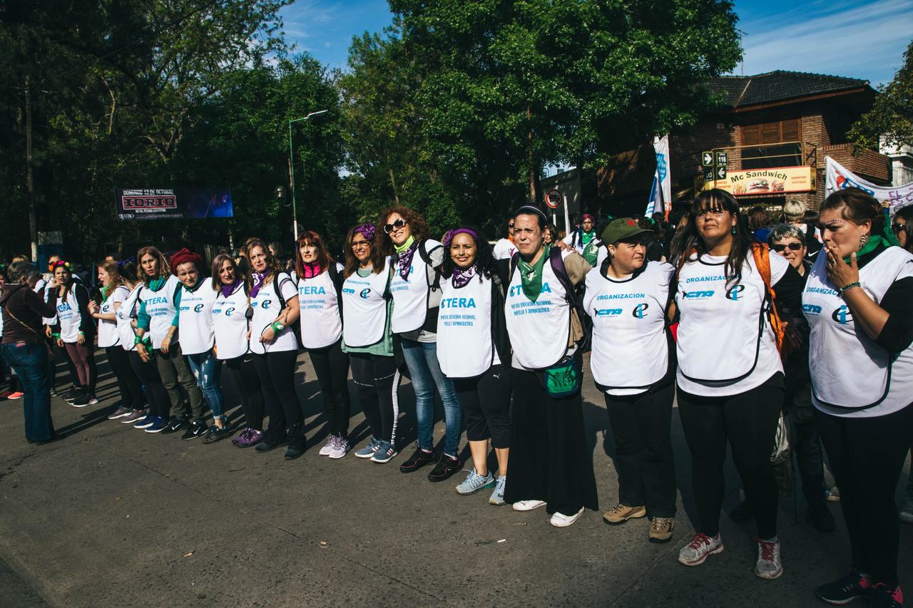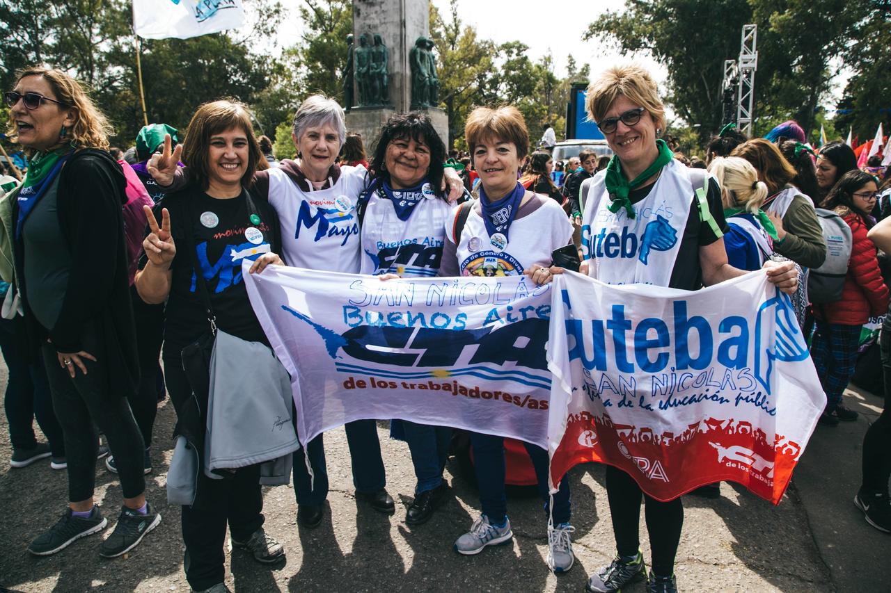 Cristina Echegoyen, Secretaria de Igualdad de Géneros y Diversidad del SUTEBA fue la encargada de dar la bienvenida y expresó: "Cuando las Trabajadoras comenzamos a hacer visible en la calle el camino que vamos recorriendo desde hace muchos años en nuestras Organizaciones, cuando hicimos visibles nuestra identidad al reconocernos Trabajadoras organizadas en los Sindicatos, cuando hicimos visible ese otro trabajo que venimos haciendo y que es el de reconocer, dentro del Sindicato, que la lucha es clase y también es de género; ahí nos dimos cuenta que no estábamos solas, que somos miles de una punta a otra del país. Y por eso hoy compartimos orgullosamente con las compañeras de la CFT - CGT y de la economía popular CTEP".