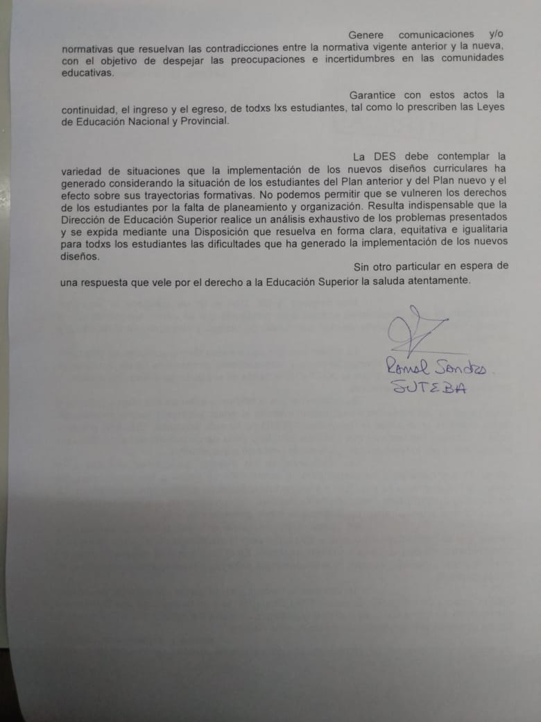 Asimismo, la Secretaría Gremial de Educación Superior de nuestro Sindicato exigió que se emita una disposición que privilegie las trayectorias educativas y la terminalidad de lxs Estudiantes de ambos planes.