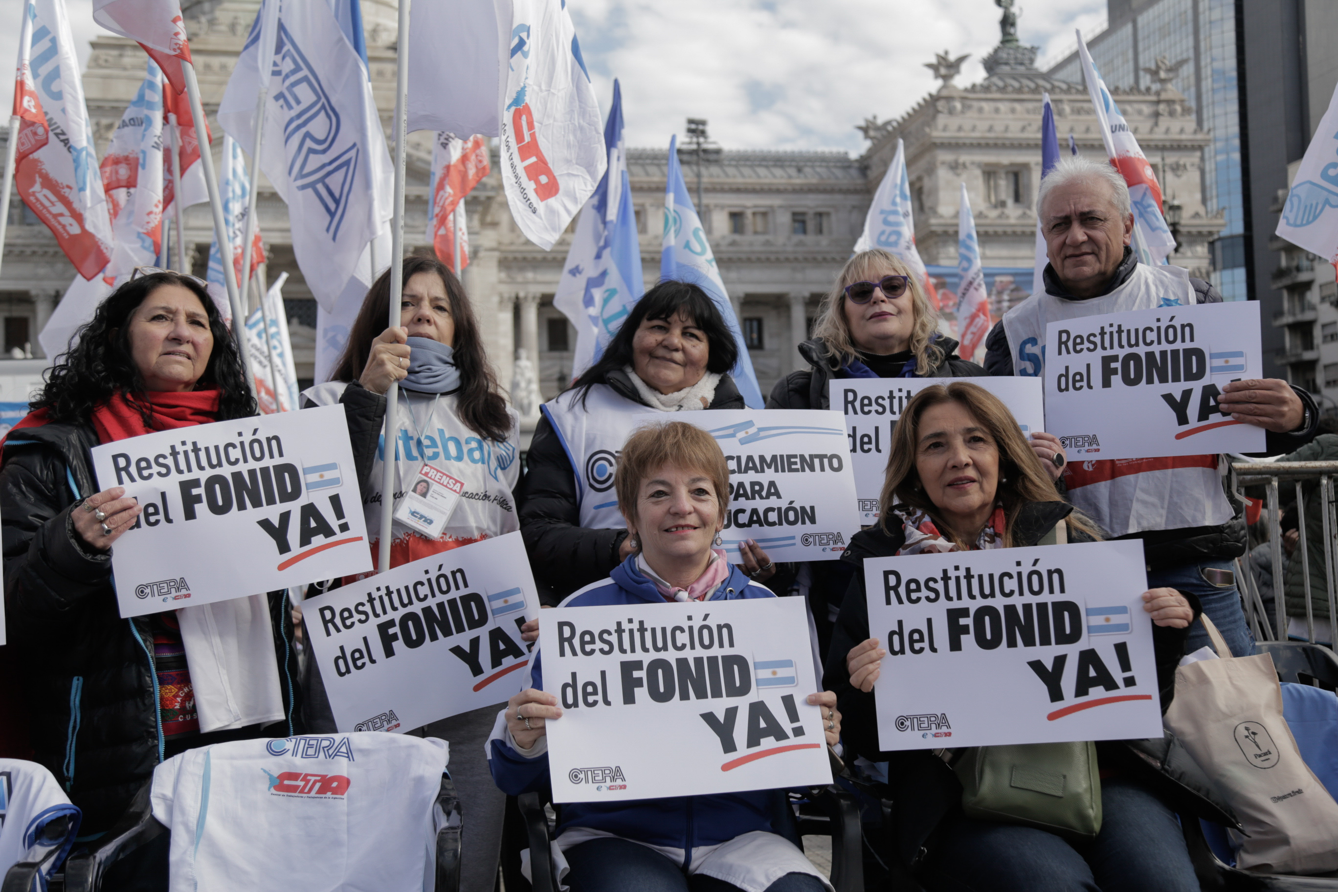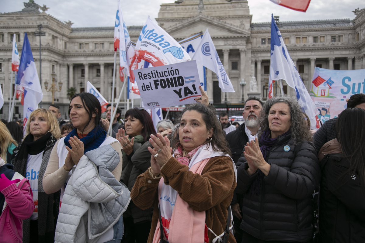 Sonia Alesso, Secretaria General de la CTERA, expresó: "Vinimos a exigirle a lxs Diputadxs de todas las bancadas que se trate definitivamente la restitución del FONID y los Fondos para las Universidades Nacionales. Sorprende que haya 9 diversas bancadas que presentaron Proyectos de Ley y hoy no se consiga el quórum. Tiene que haber una discusión seria en el Congreso de la Nación".