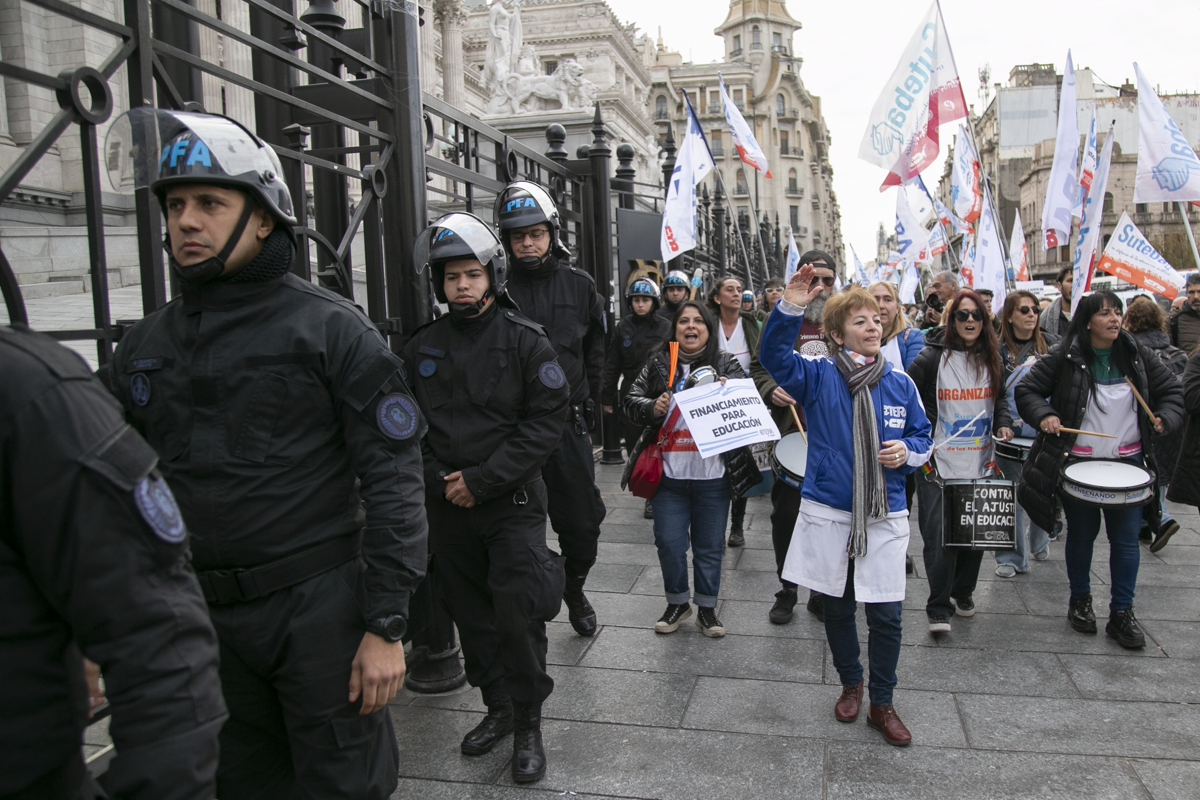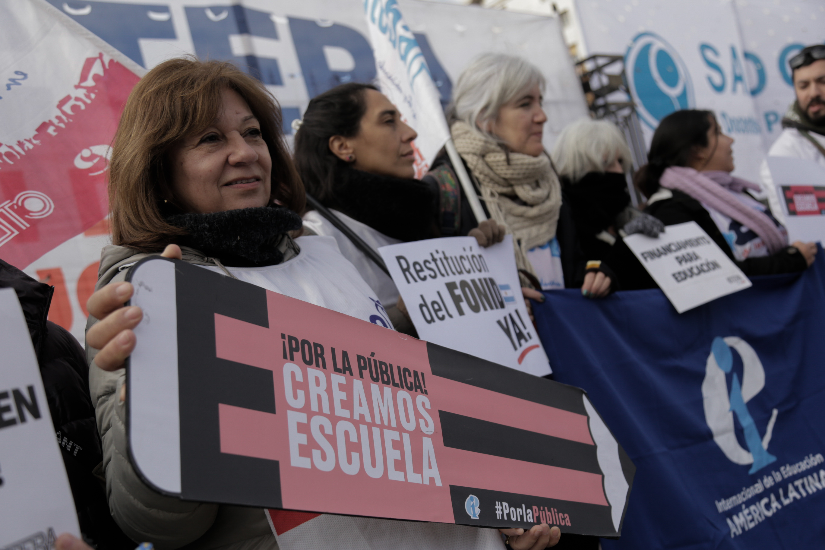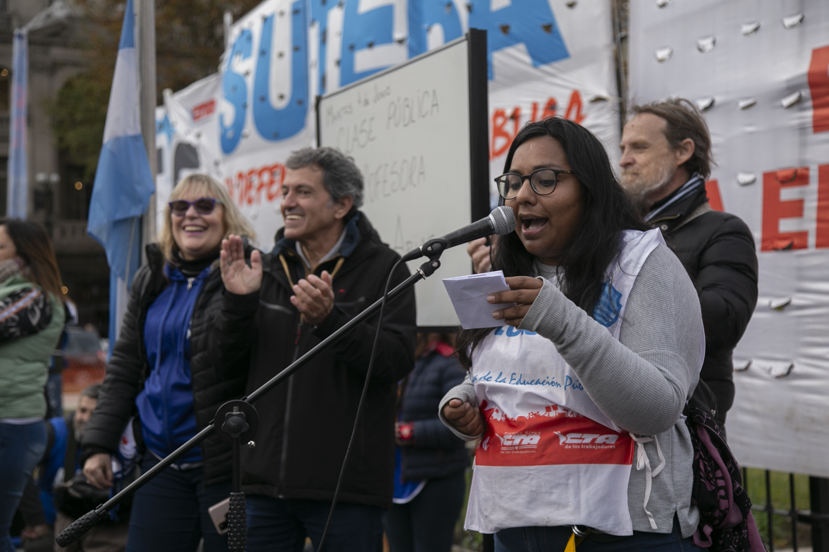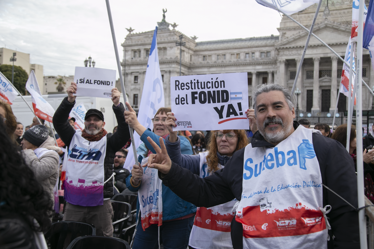 La Secretaria General Adjunta del SUTEBA, María Laura Torre, subrayó: "Estamos acá y vamos a estar todas las veces que sean necesarias, a la expectativa del debate y el tratamiento del FONID, un logro que conseguimos lxs Trabajadorxs de la Educación después de tres años de Carpa Blanca y de ayuno. El Fondo es nuestro derecho, nos han saqueado nuestro salario".