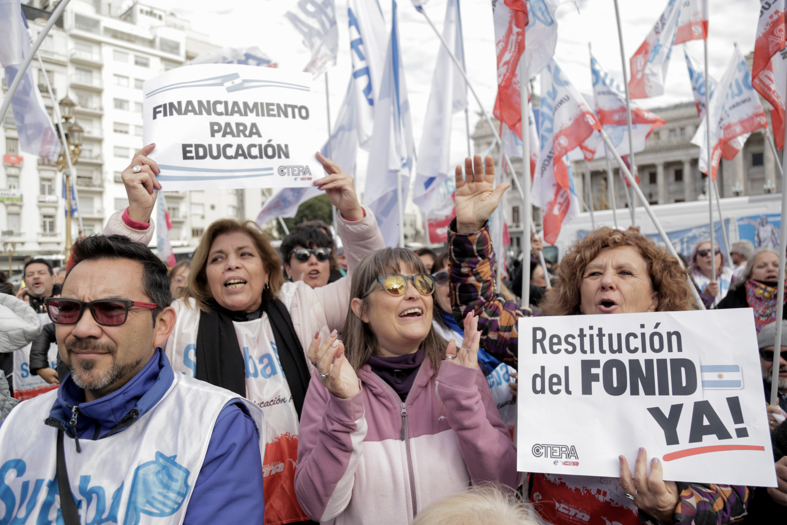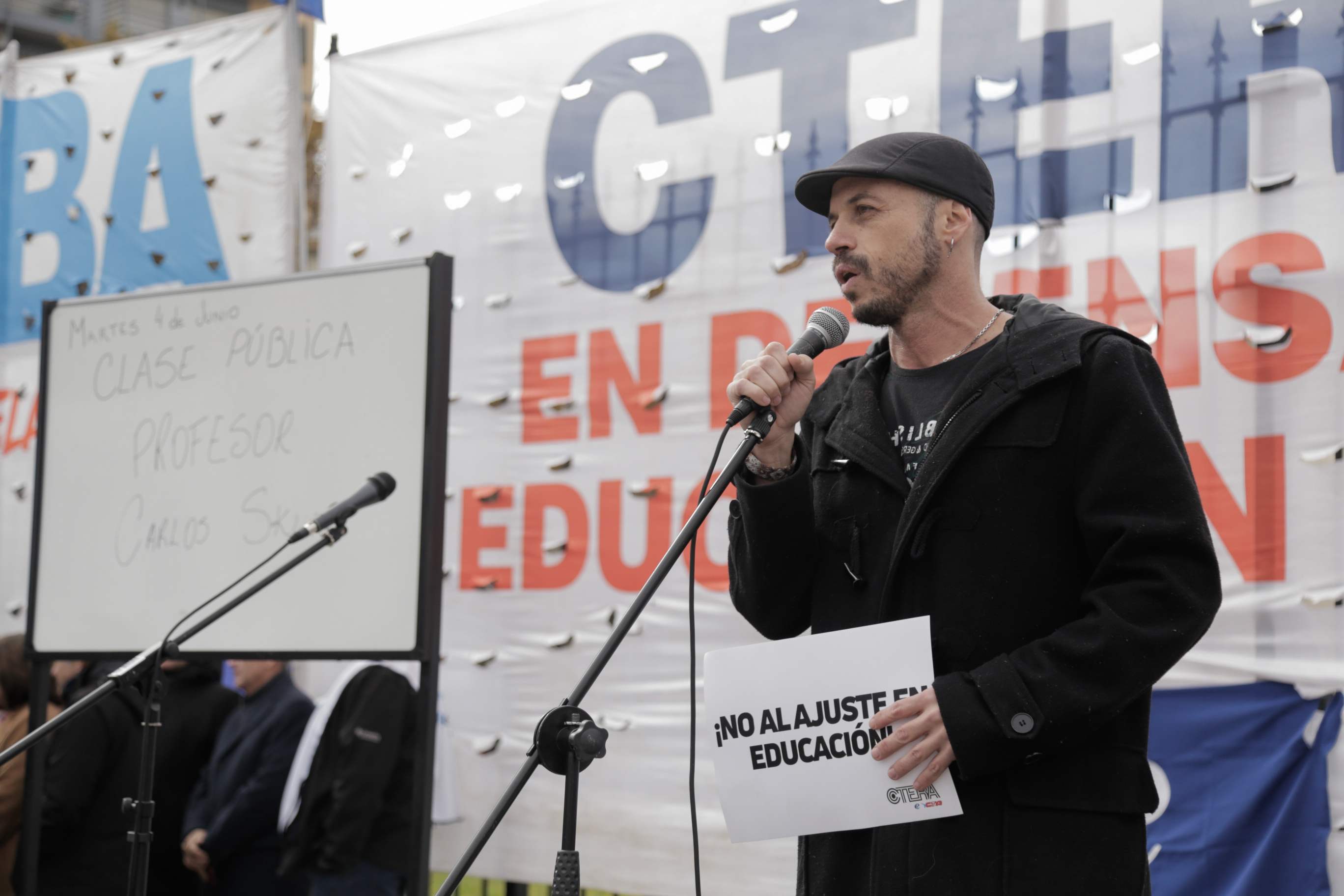 El SUTEBA participó, este martes 4 de junio, de una clase pública convocada por la CTERA en la Plaza de los dos Congresos. La acción se llevó a cabo como continuidad del plan de lucha para exigir financiamiento educativo y restitución del FONID. También se llevaron adelante acciones similares en toda la provincia de Buenos Aires.