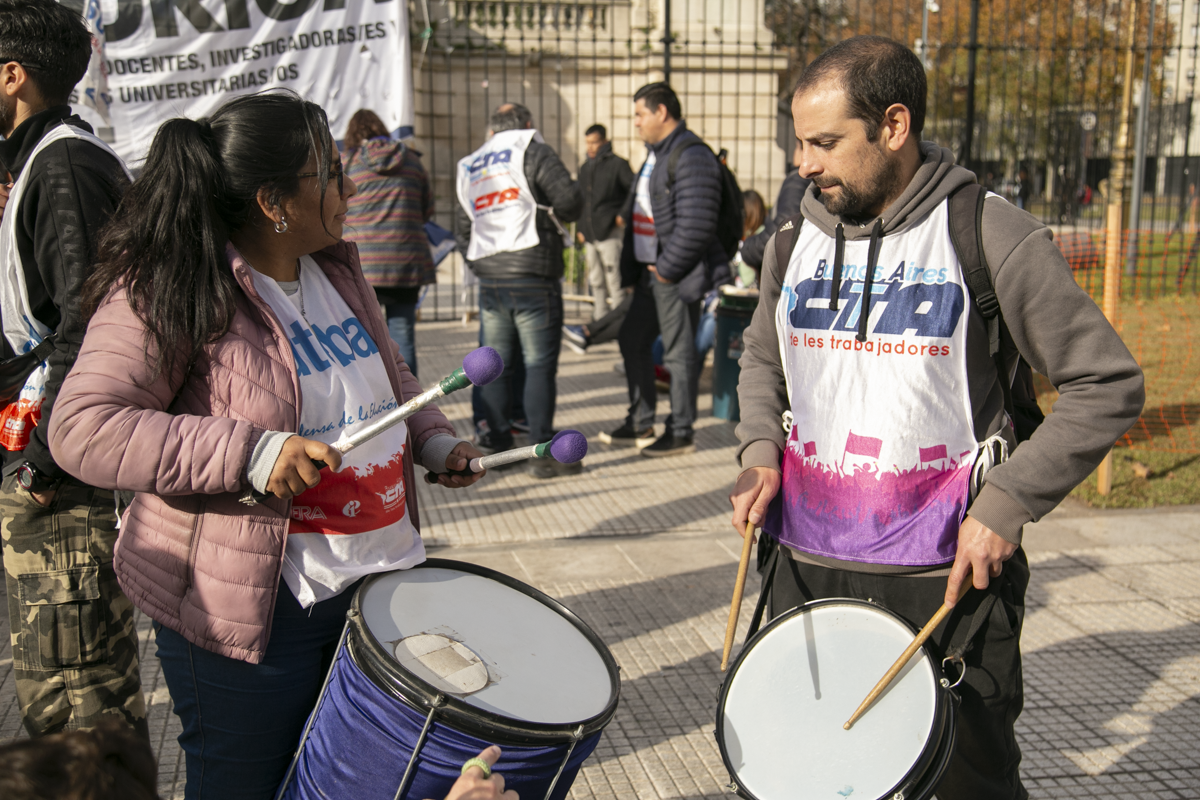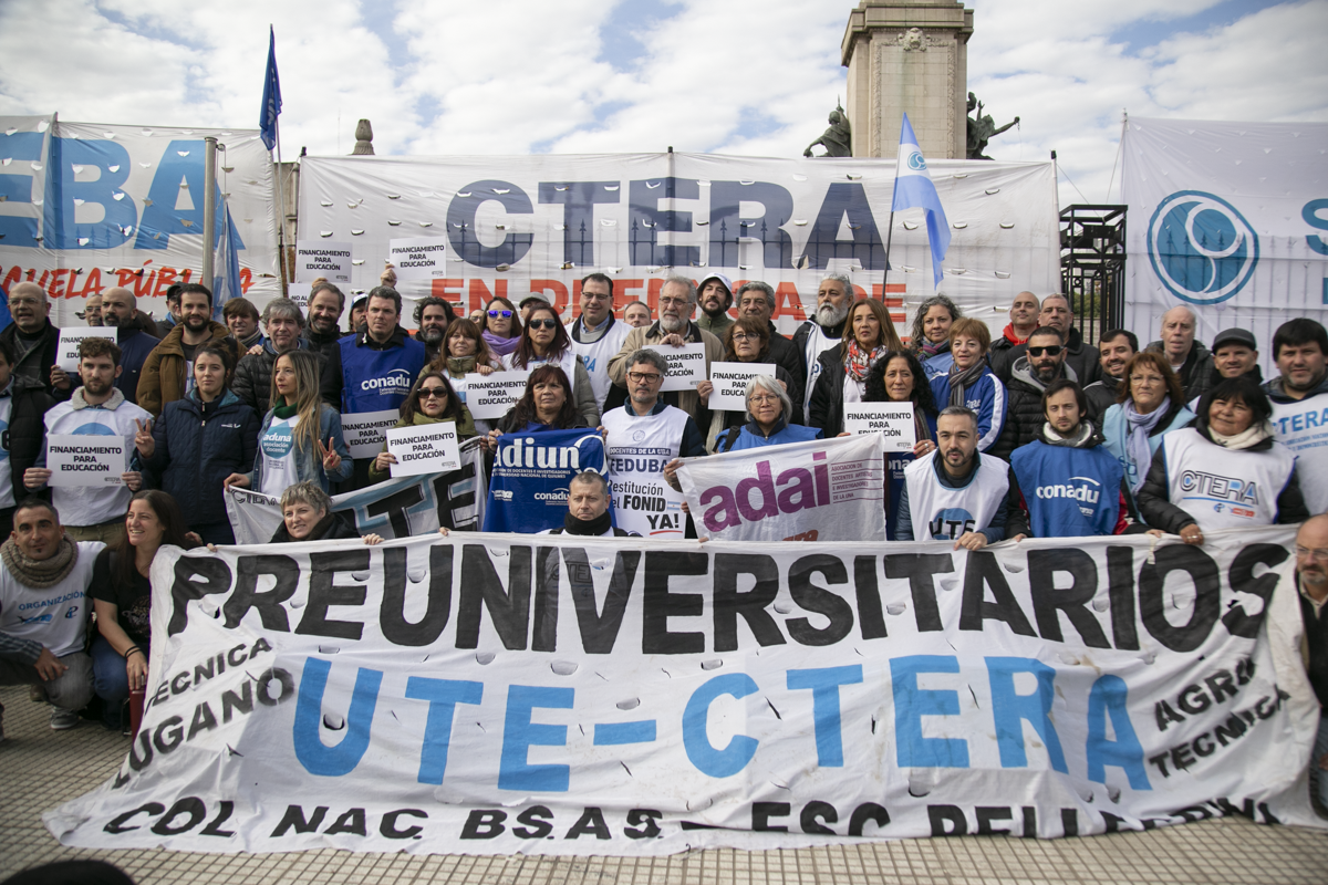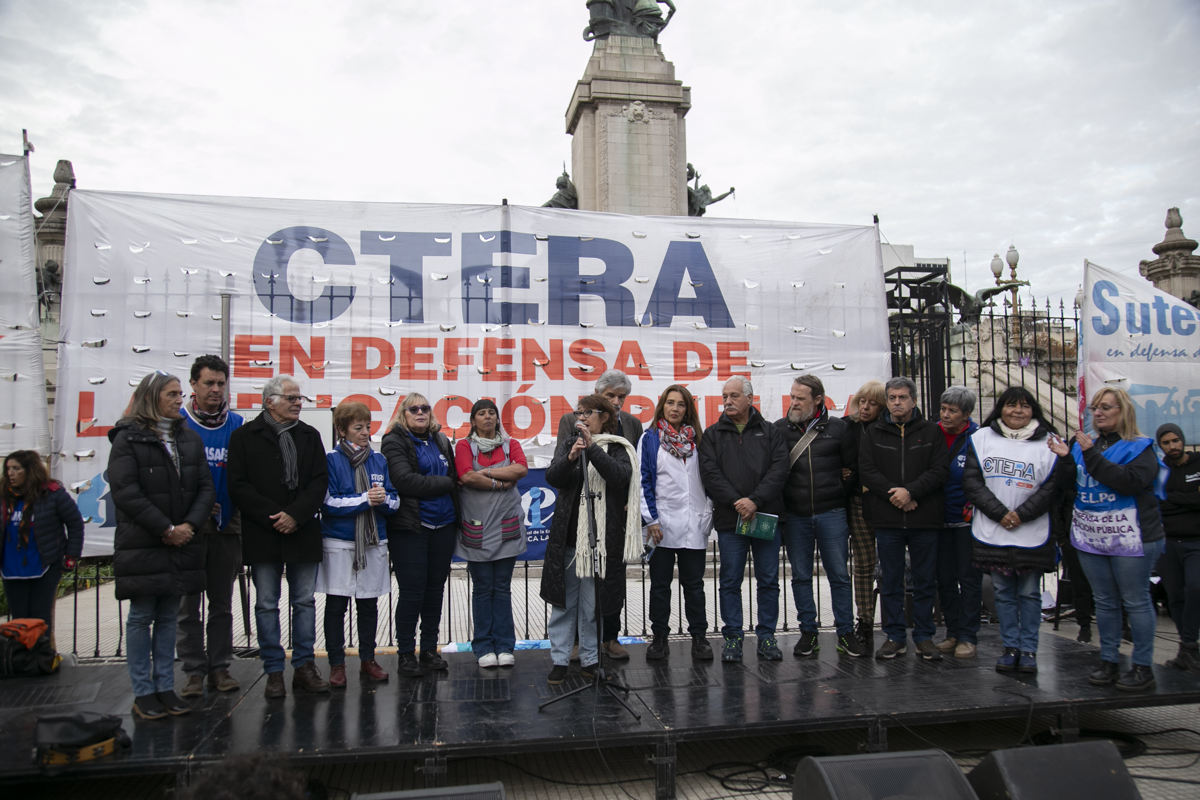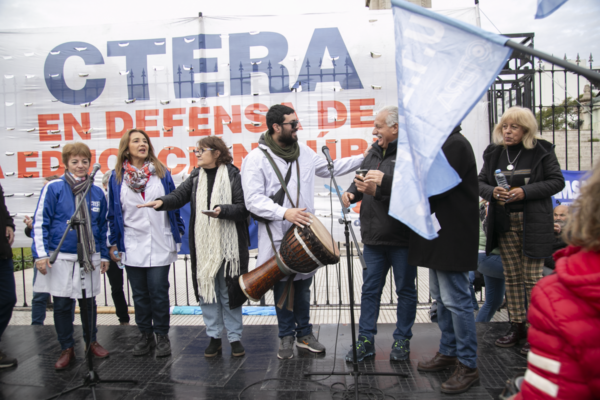 En la clase pública, disertaron destacadxs pedagogxs y académicxs. Además, hubo participación de diversxs artistas populares. Delegaciones de todas las provincias del país de sindicatos de base de la CTERA participaron durante toda la jornada junto a la CONADU y la CONADU Histórica.