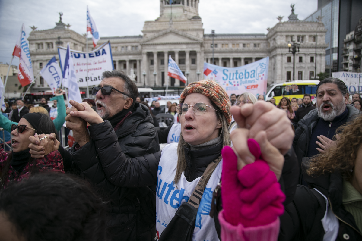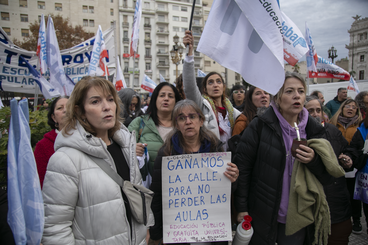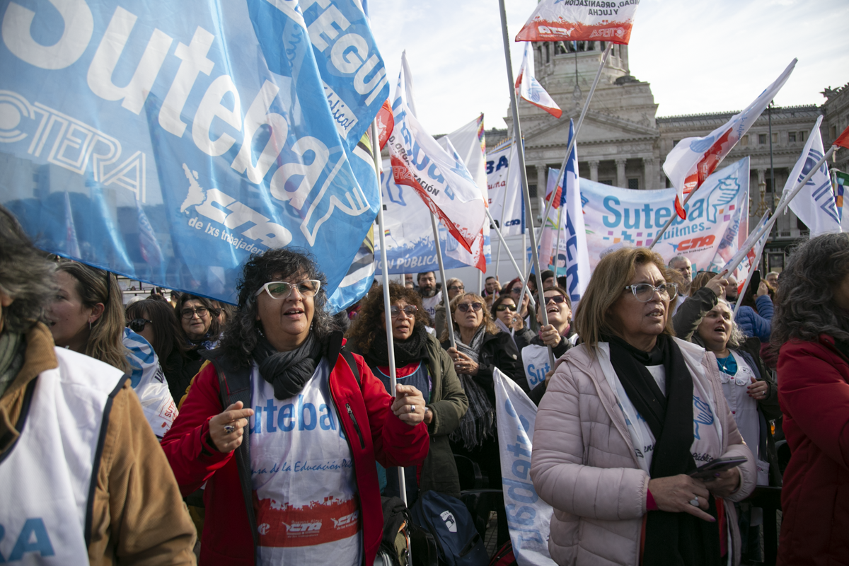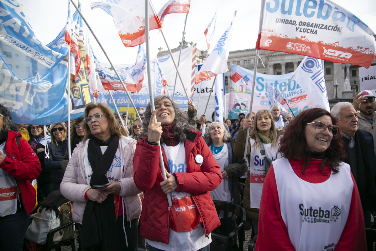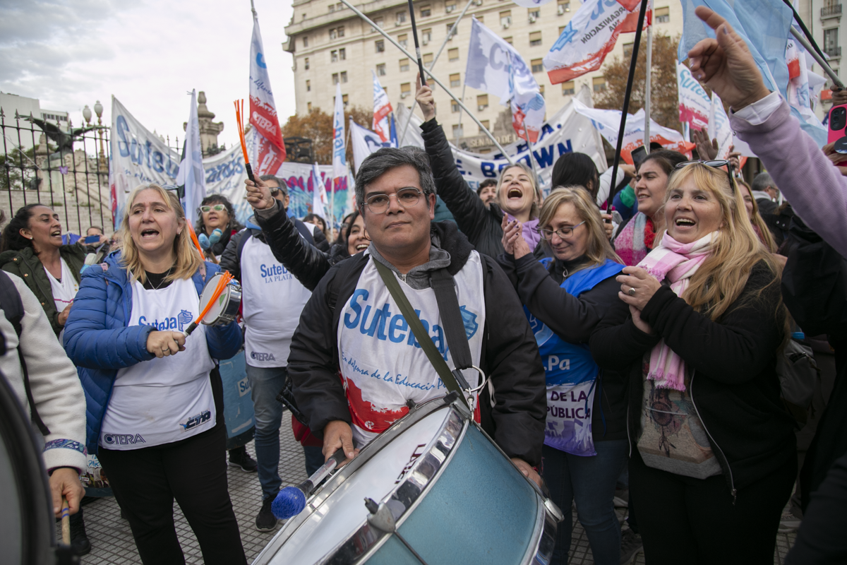 "Este es un Gobierno cruel, brutal e insensible, pero no vamos a dejar de movilizar para que escuchen nuestras demandas. La Escuela Pública está de pie y no se rinde. Tenemos que ser miles para decirle NO a la Ley Bases y a la entrega de nuestra Patria", culminó Alesso.