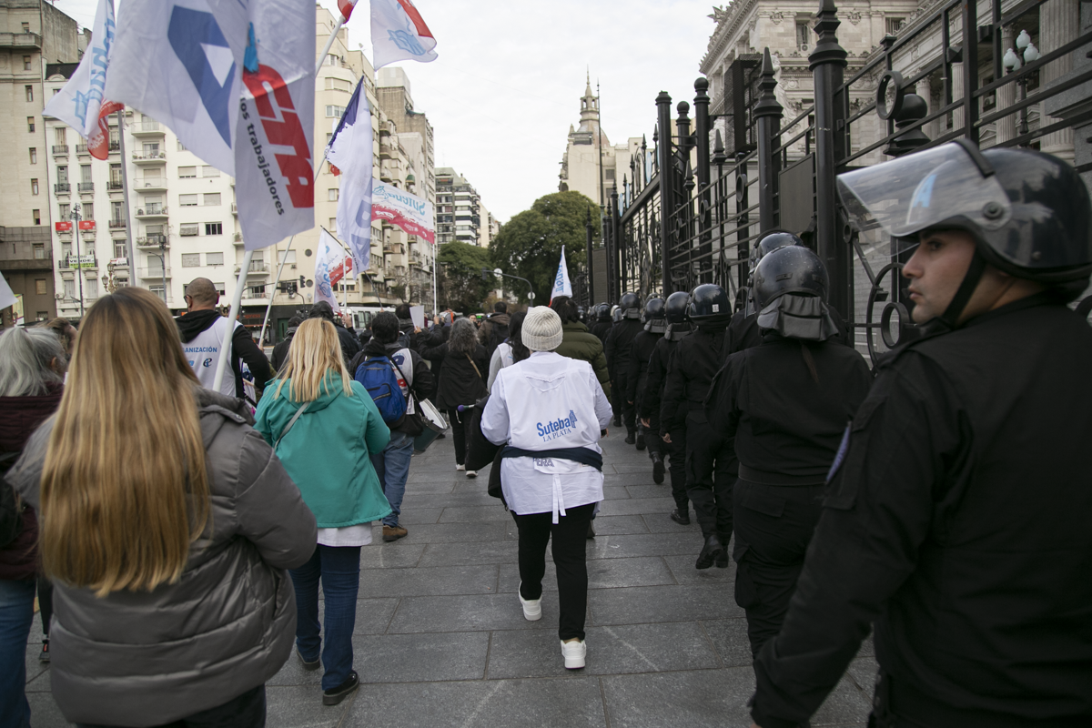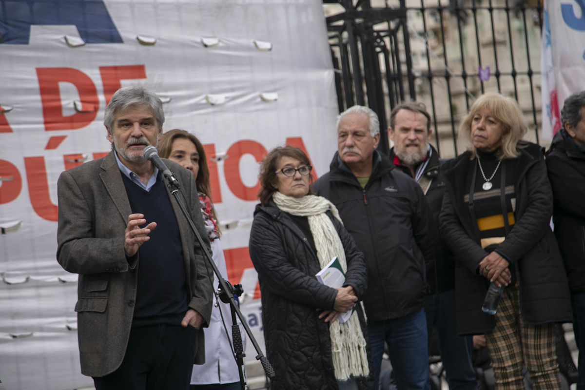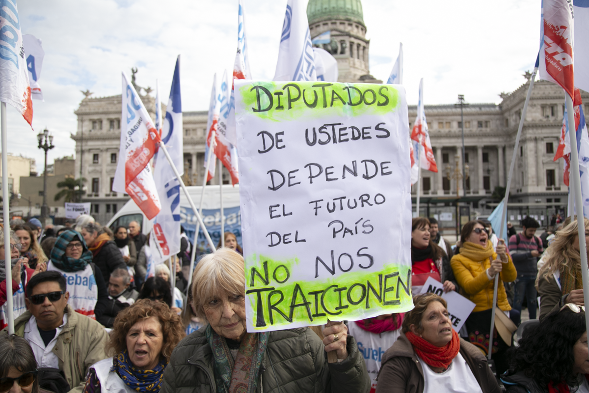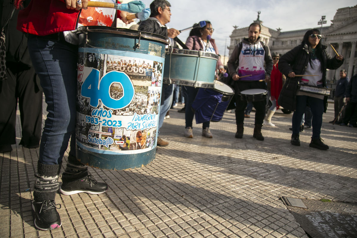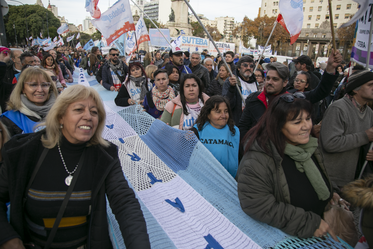 "Este es un Gobierno cruel, brutal e insensible, pero no vamos a dejar de movilizar para que escuchen nuestras demandas. La Escuela Pública está de pie y no se rinde. Tenemos que ser miles para decirle NO a la Ley Bases y a la entrega de nuestra Patria", culminó Alesso.