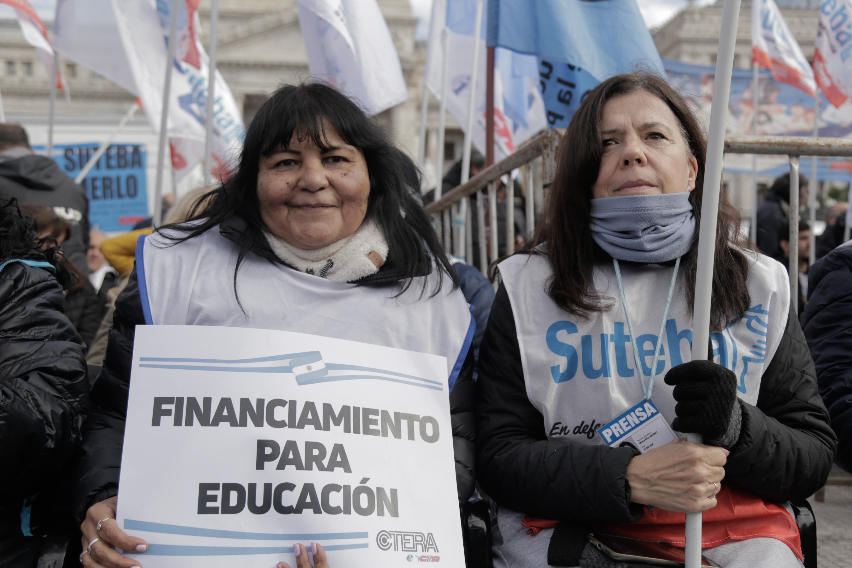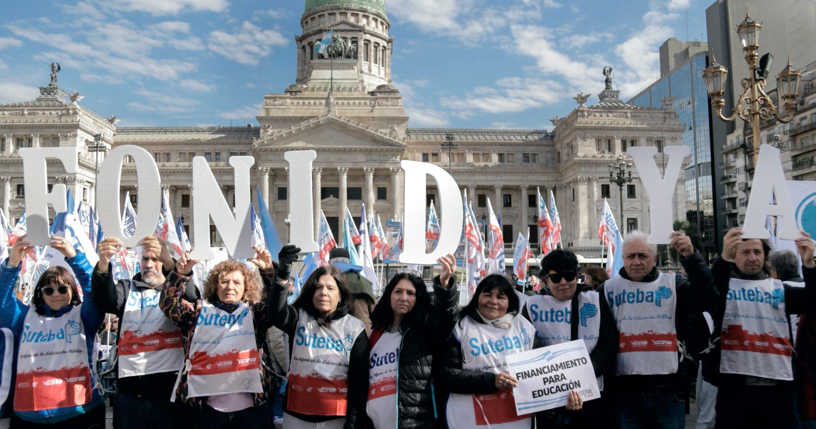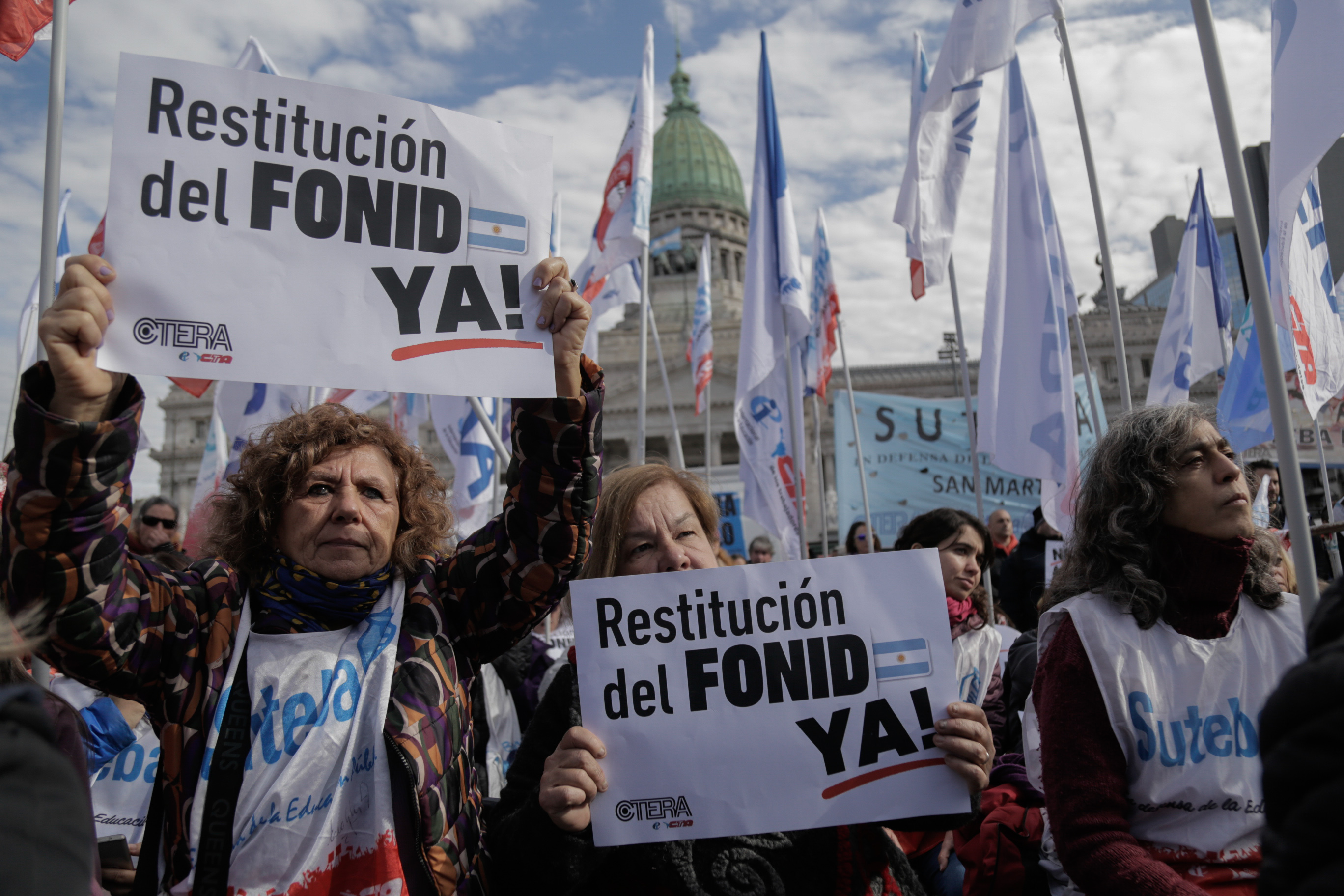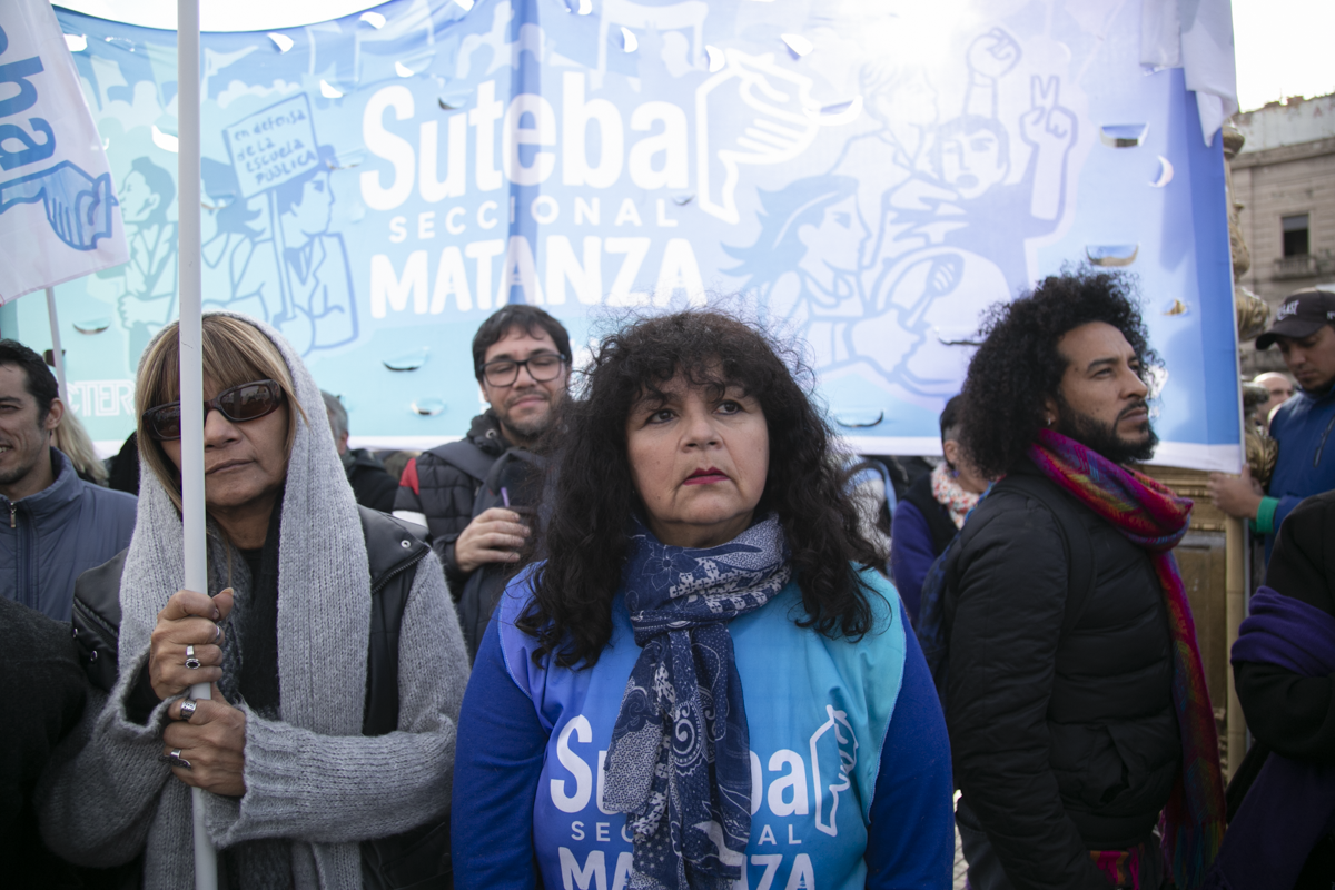 La Secretaria General Adjunta del SUTEBA, María Laura Torre, subrayó: "Estamos acá y vamos a estar todas las veces que sean necesarias, a la expectativa del debate y el tratamiento del FONID, un logro que conseguimos lxs Trabajadorxs de la Educación después de tres años de Carpa Blanca y de ayuno. El Fondo es nuestro derecho, nos han saqueado nuestro salario".