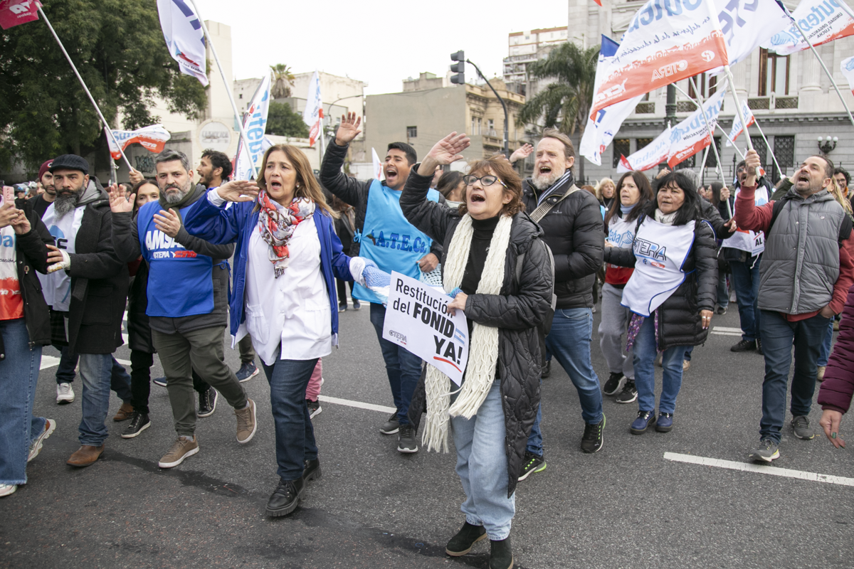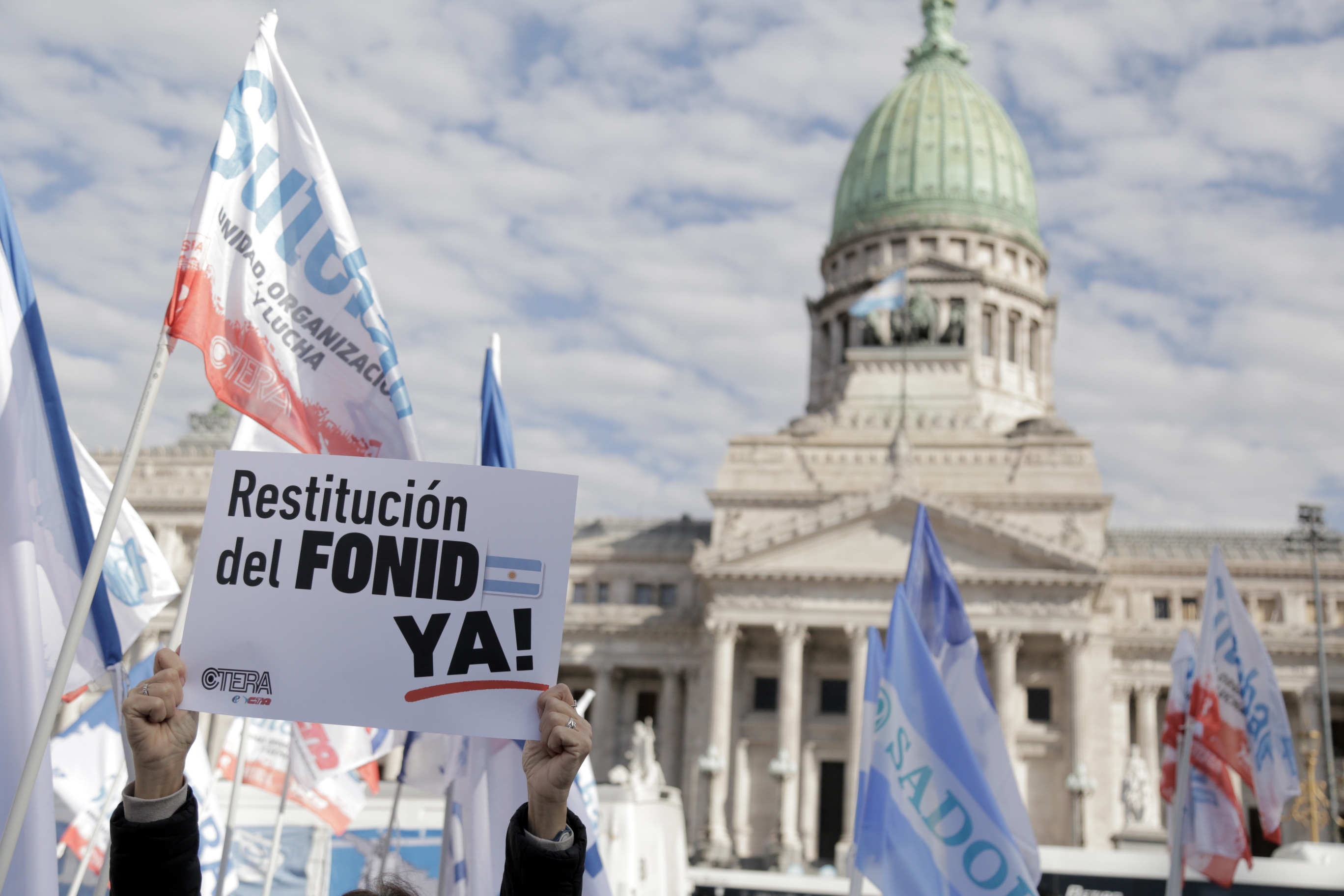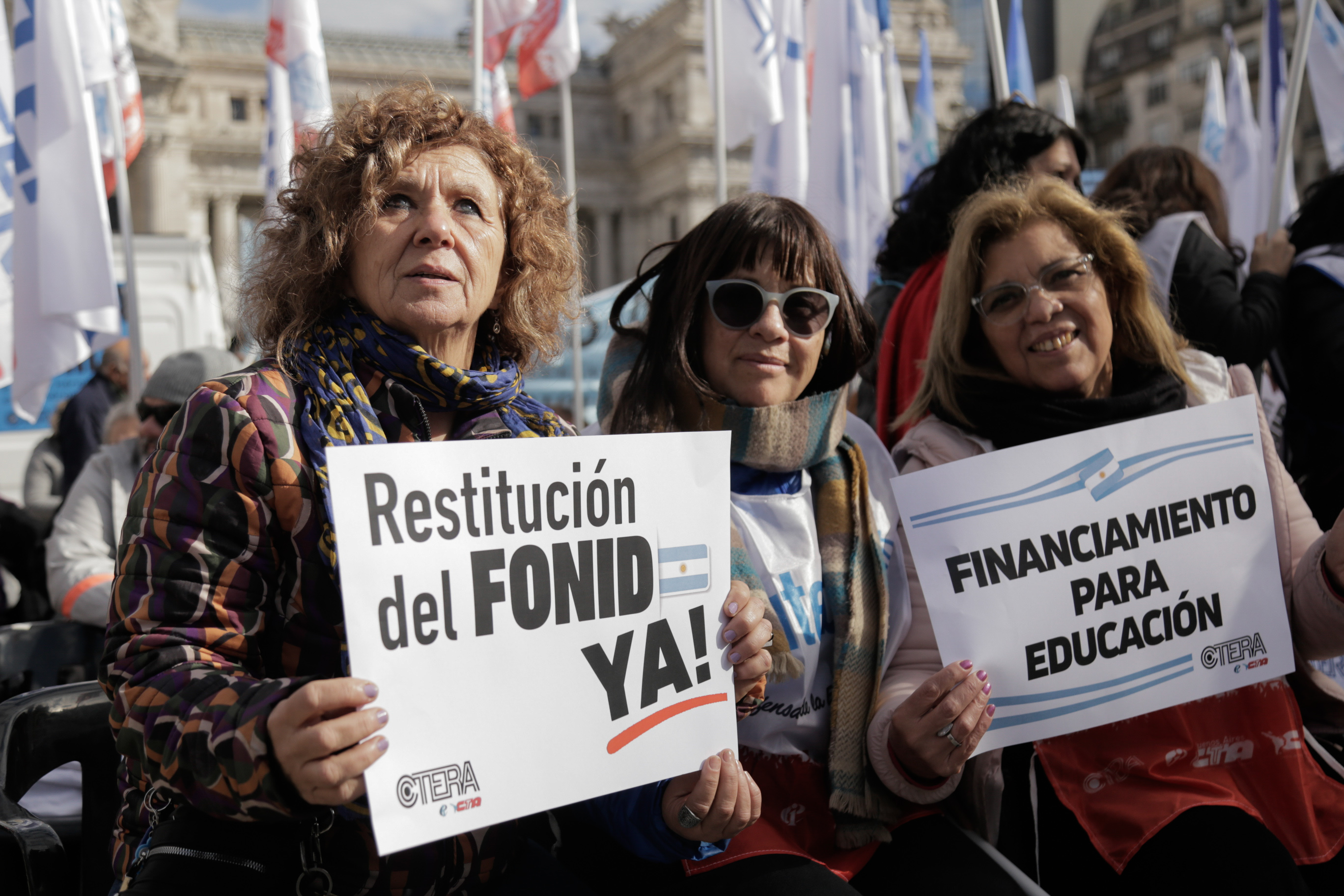 Sonia Alesso, Secretaria General de la CTERA, expresó: "Vinimos a exigirle a lxs Diputadxs de todas las bancadas que se trate definitivamente la restitución del FONID y los Fondos para las Universidades Nacionales. Sorprende que haya 9 diversas bancadas que presentaron Proyectos de Ley y hoy no se consiga el quórum. Tiene que haber una discusión seria en el Congreso de la Nación".