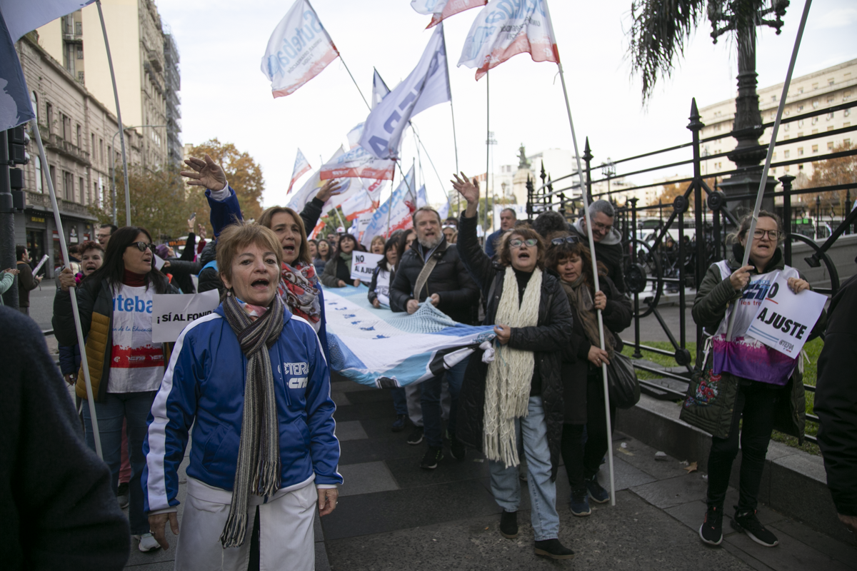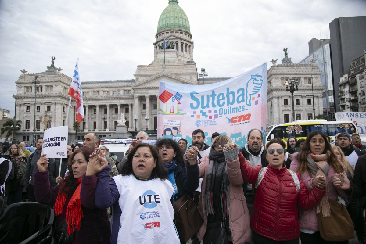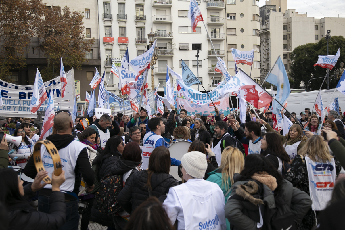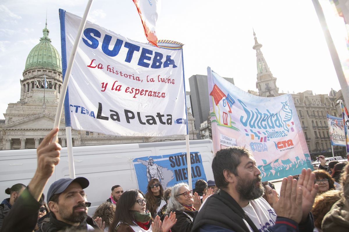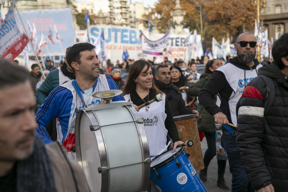 "Este es un Gobierno cruel, brutal e insensible, pero no vamos a dejar de movilizar para que escuchen nuestras demandas. La Escuela Pública está de pie y no se rinde. Tenemos que ser miles para decirle NO a la Ley Bases y a la entrega de nuestra Patria", culminó Alesso.
