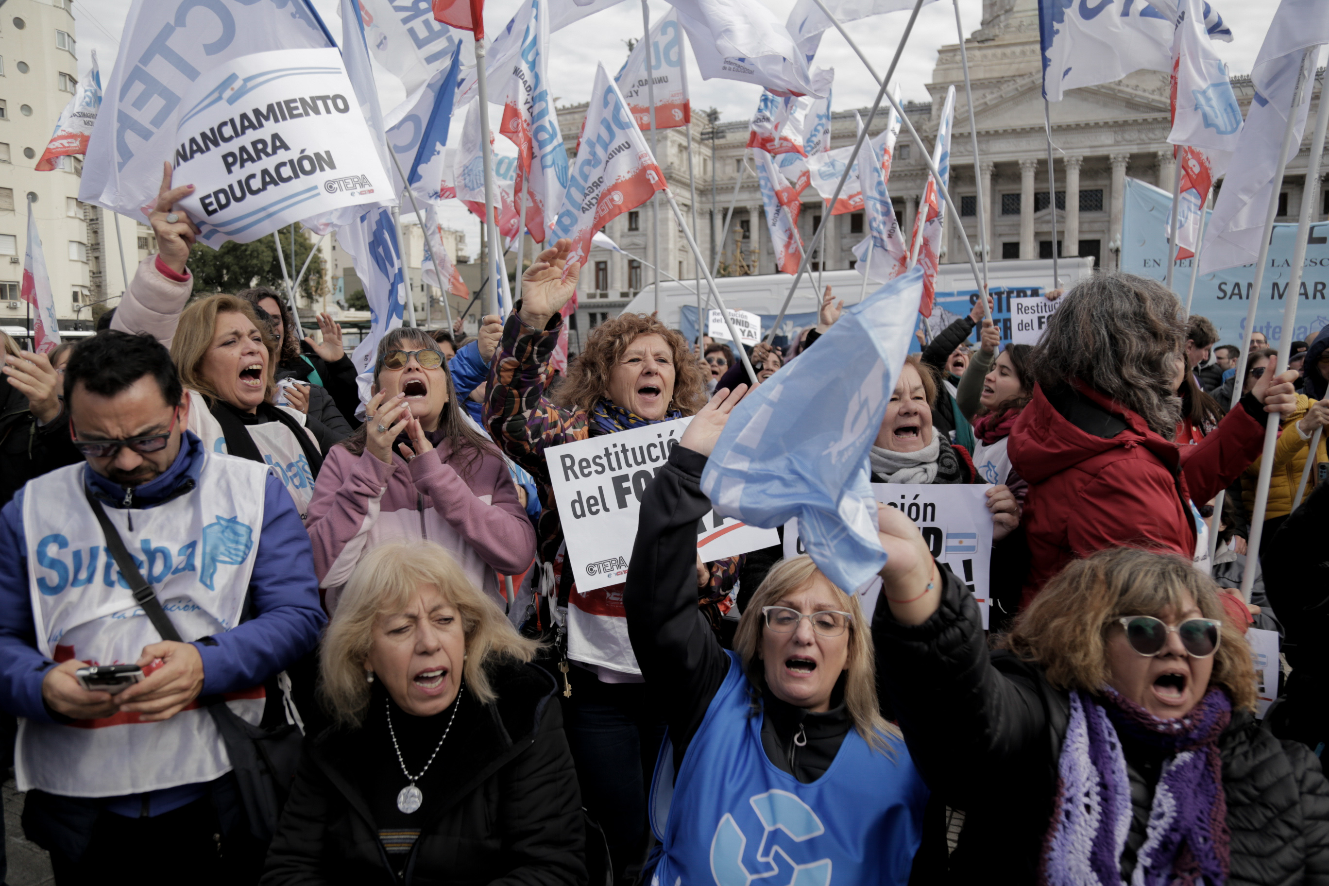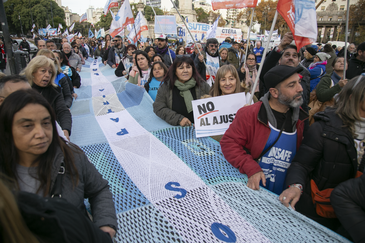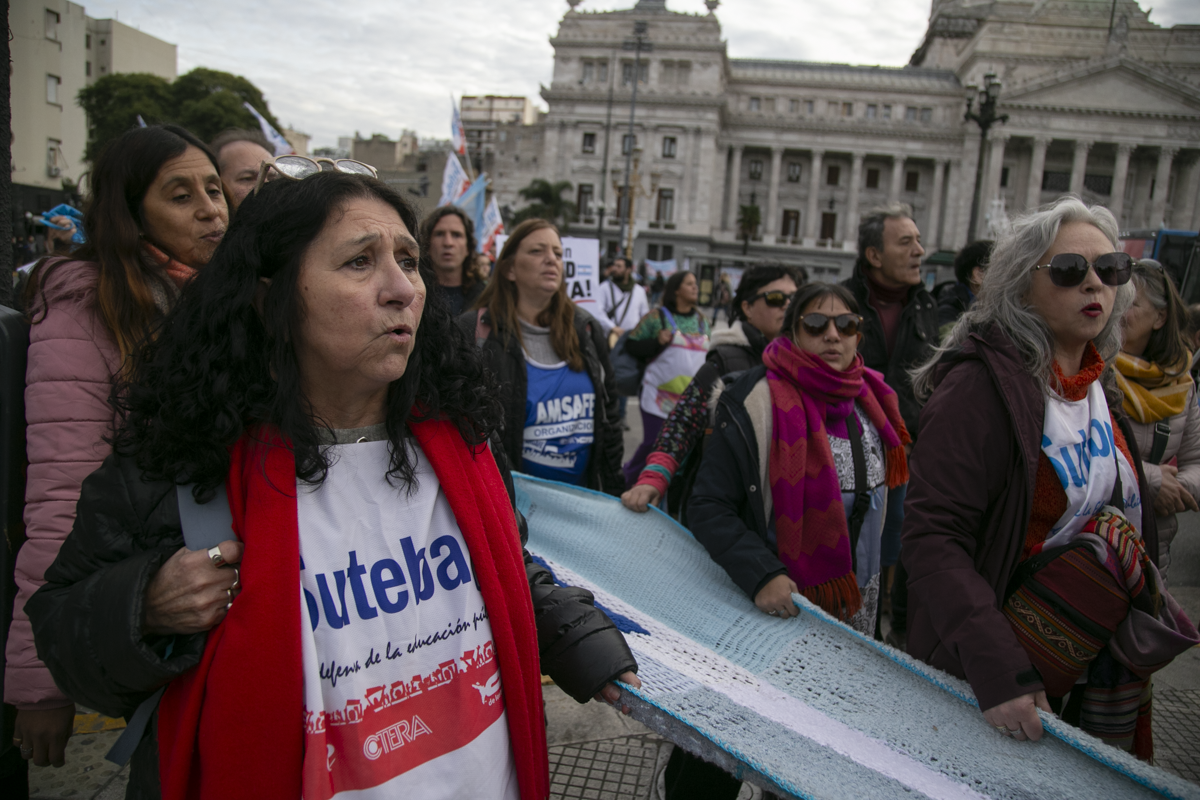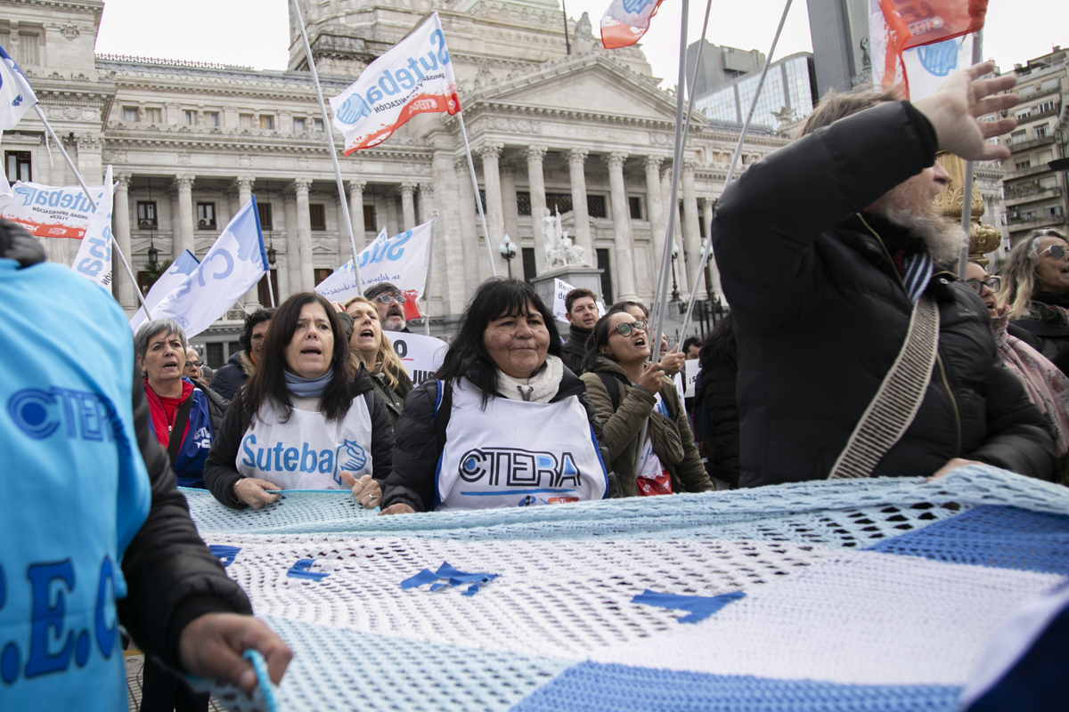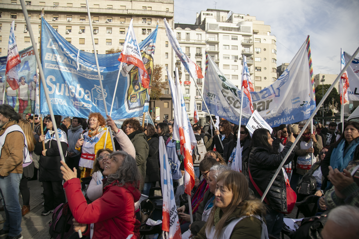 "Este es un Gobierno cruel, brutal e insensible, pero no vamos a dejar de movilizar para que escuchen nuestras demandas. La Escuela Pública está de pie y no se rinde. Tenemos que ser miles para decirle NO a la Ley Bases y a la entrega de nuestra Patria", culminó Alesso.