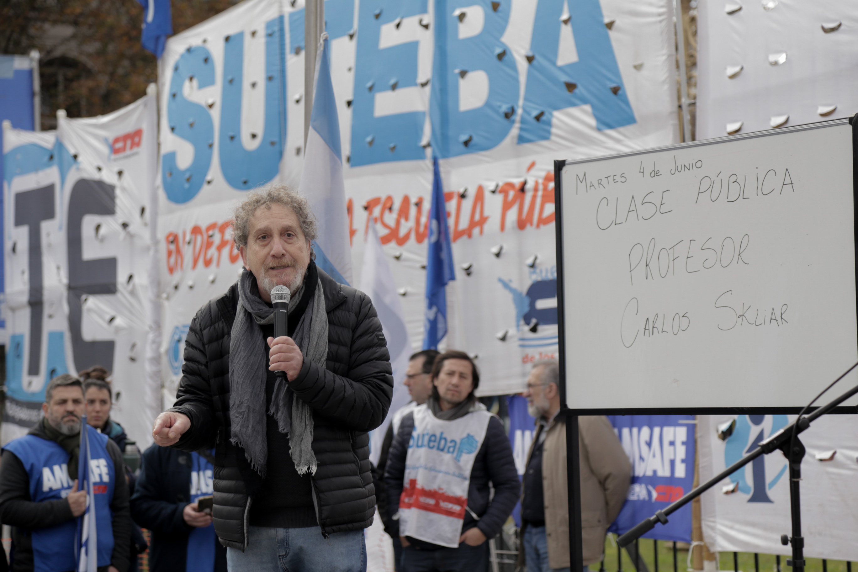 Los Diputados Hugo Yasky y Sergio Palazzo se acercaron, entre otrxs, a comentar lo que estaba pasando en el recinto. También hablaron Nacho Levy, de la Garganta Poderosa; el Docente e Investigador Carlos Skliar; y representantes de la CTERA y del resto de los Sindicatos.