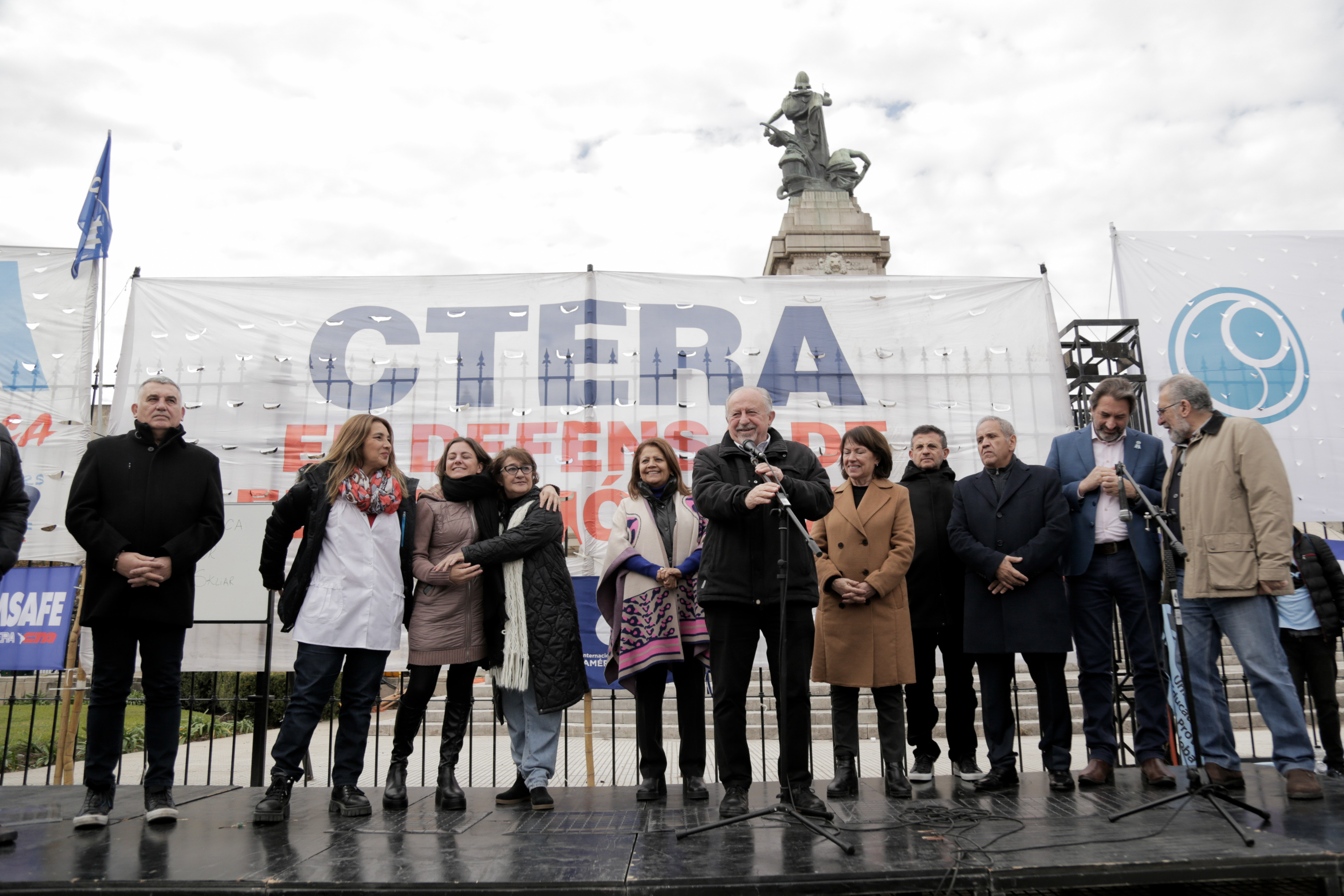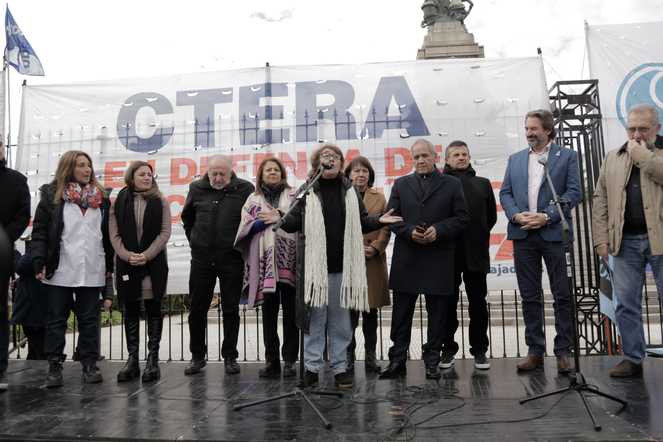 En la clase pública, disertaron destacadxs pedagogxs y académicxs. Además, hubo participación de diversxs artistas populares. Delegaciones de todas las provincias del país de sindicatos de base de la CTERA participaron durante toda la jornada junto a la CONADU y la CONADU Histórica.
