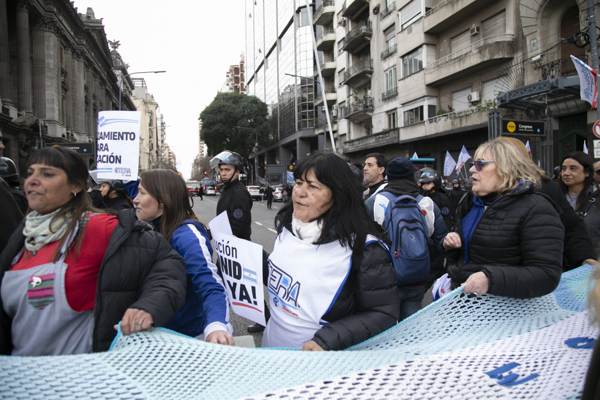 En la misma línea, Silvia Almazán, Secretaria General Adjunta, destacó: "Esperamos el tratamiento de las Leyes de Financiamiento Educativo. Lxs Trabajadorxs de la Educación de todo el país estamos construyendo una lucha histórica, porque contra todo el discurso y la acción del Gobierno Nacional de ajustar en la Educación Pública y de recortar nuestro salario, nosotrxs obstinadamente insistimos en que las leyes plantean que el Estado Nacional tiene que garantizar la Educación Pública en todo el país".