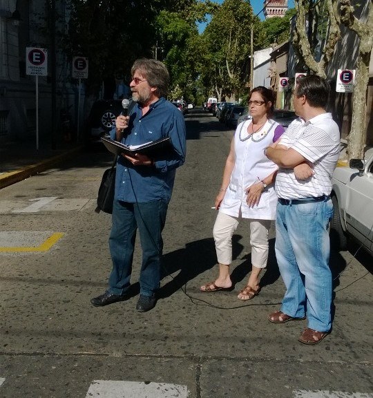 El viernes 13, SUTEBA, en el marco de la CTA regional, realizó una acción de permanencia con más de 200 personas entre docentes, padres, delegados, compañeros de ATE, FATe en la Fiscalía de San Fernando. La Secretaria General María José Parejo y el compañero de SUTEBA, Consejero General de Educación Néstor Caraza se entrevistaron con el Fiscal de la causa exigiendo justicia y reclamando prisión inmediata del agresor.