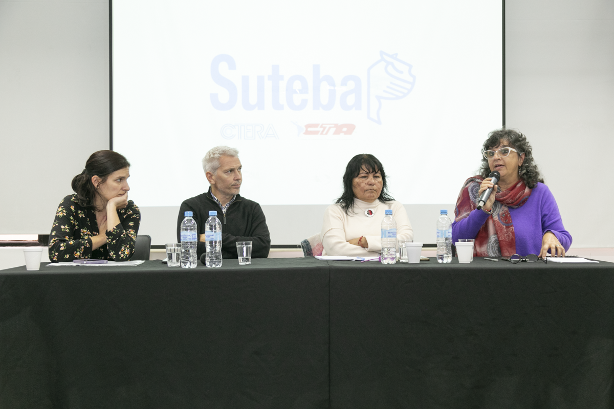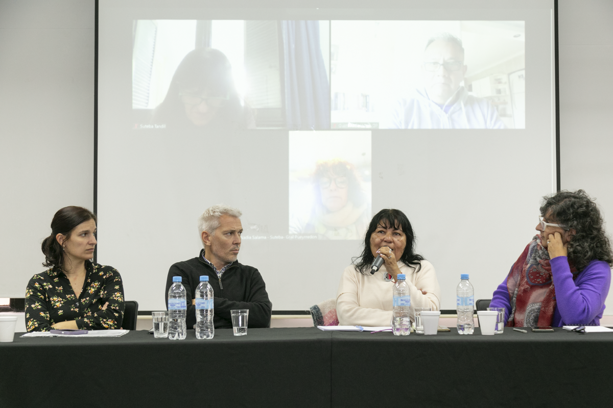 Marisa Barromeres, Secretaria de Salud Laboral del SUTEBA, expresó durante el encuentro: "Entendemos que lo que pasó este año respecto a las fallas en la planificación tiene que ver con el Gobierno Nacional. En enero o febrero de 2023 ya estaban las partidas en los distritos, cosa que ahora no pasó. Tenemos que estar atentxs a la planificación y la articulación de todos los espacios, ya sea Comités Mixtos, UEGD, etc., todo lo que nos puede permitir el trabajo preventivo para cuidar a nuestrxs compañerxs y Comunidades".