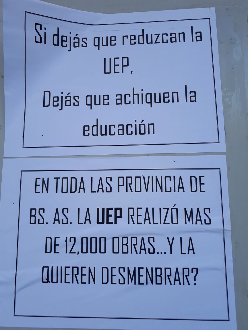 El SUTEBA denunció que por el desmantelamiento de la UEP quedan sin garantías concretas la ejecución de acciones ligadas a infraestructura, que paralizarán obras y proyectos que deben realizarse para garantizar el Derecho a la Educación de niñxs, jóvenes y adultos en la Provincia.