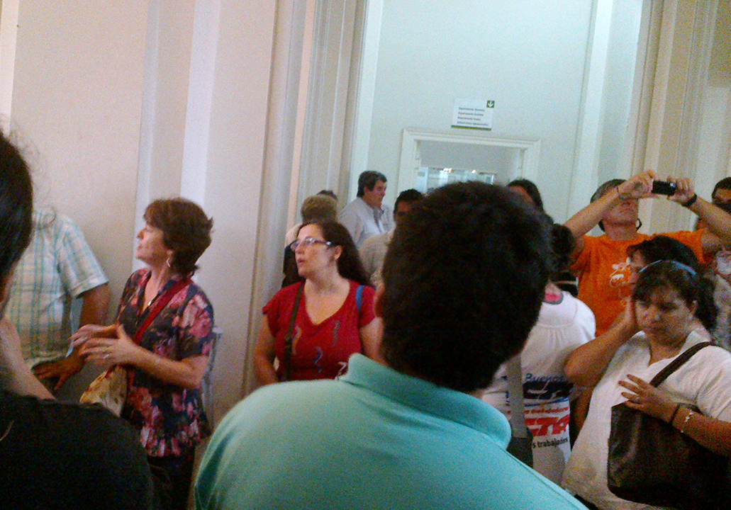 Al no ver avances la Secretaria Gremial junto con Sandra Ramal y Gladys Bravo ingresaron con un grupo numeroso de compañeros al Consejo General de Educación que estaba sesionando con la presencia de la Directora General Sra. Nora de Lucia para exigirle una respuesta inmediata.