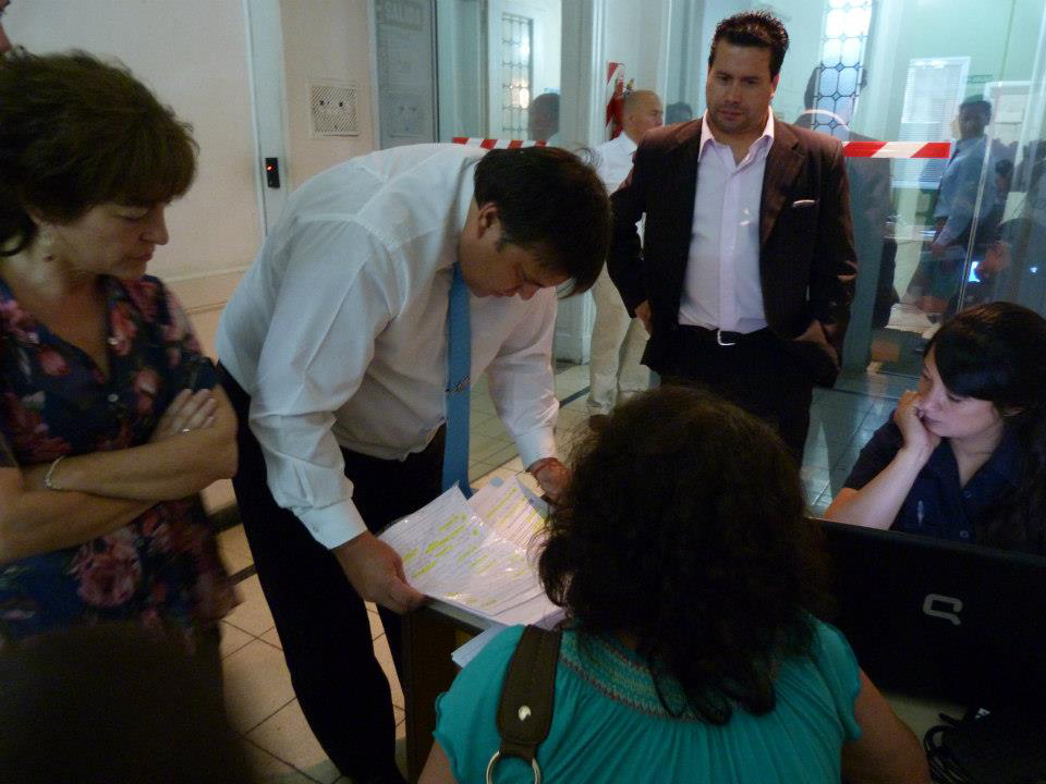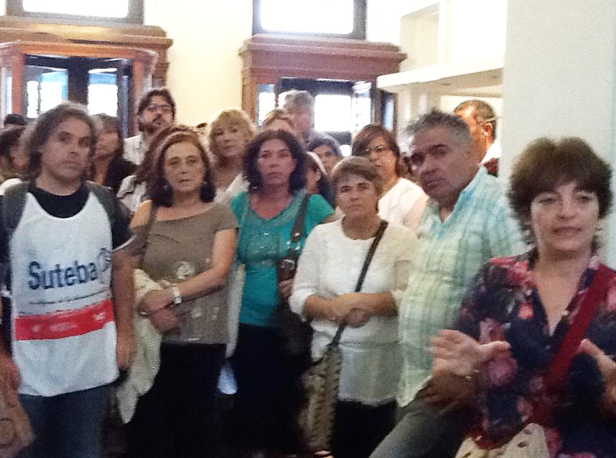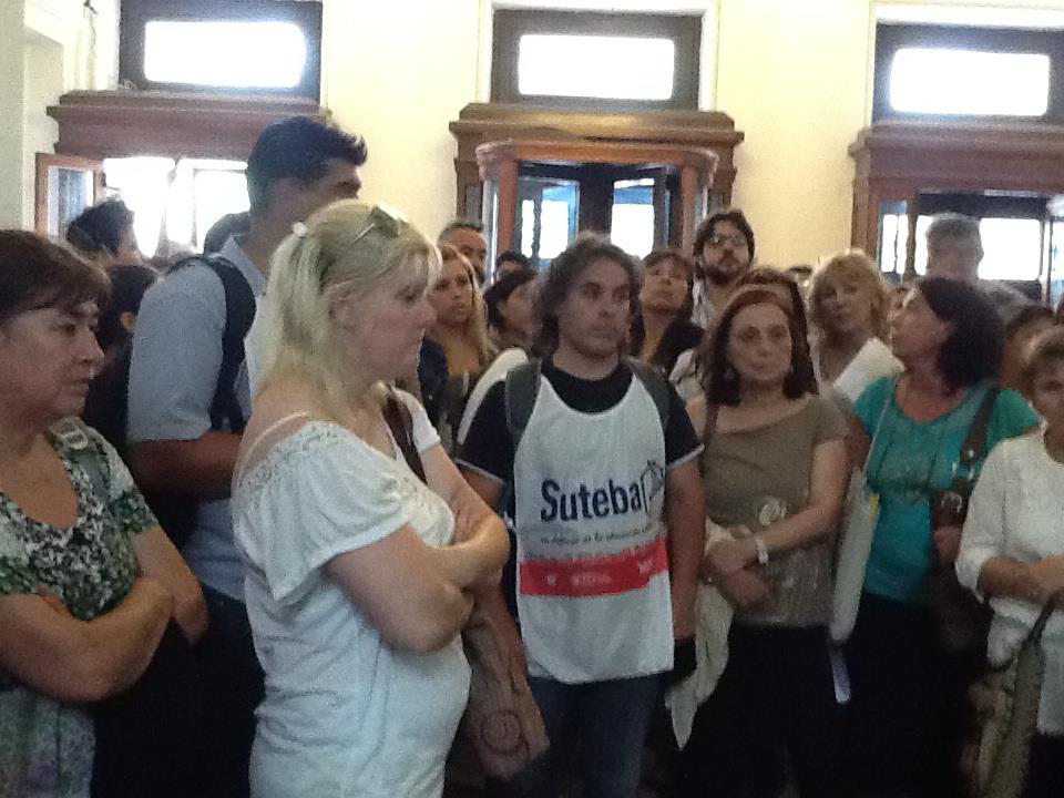 Después de diez horas de permanencia en la DGCyE con casi 200 compañeros afectados por no cobrar su salario (deudas, retroactivos, diferencias jerárquicas, salas maternales de seis horas, terceros cargos, Fines, etc), la Secretaria Gremial María Laura Torre junto a Marisa Monteiro y Leonor Quevedo del Secretariado Provincial fueron recibidas por el Sub Secretario Administrativo Walter Carbone, quien recepcionó la nómina de todos los compañeros presentes.