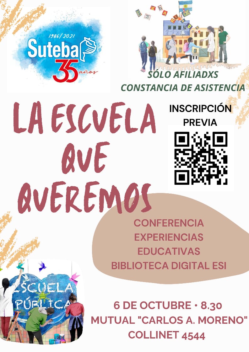 El miércoles 6 de octubre de 2021 se concretó el 2do. Encuentro de "La Escuela que queremos" en el SUTEBA Olavarría, con el objetivo de poner en debate: la organización institucional, las trayectorias pedagógicas y las políticas educativas.